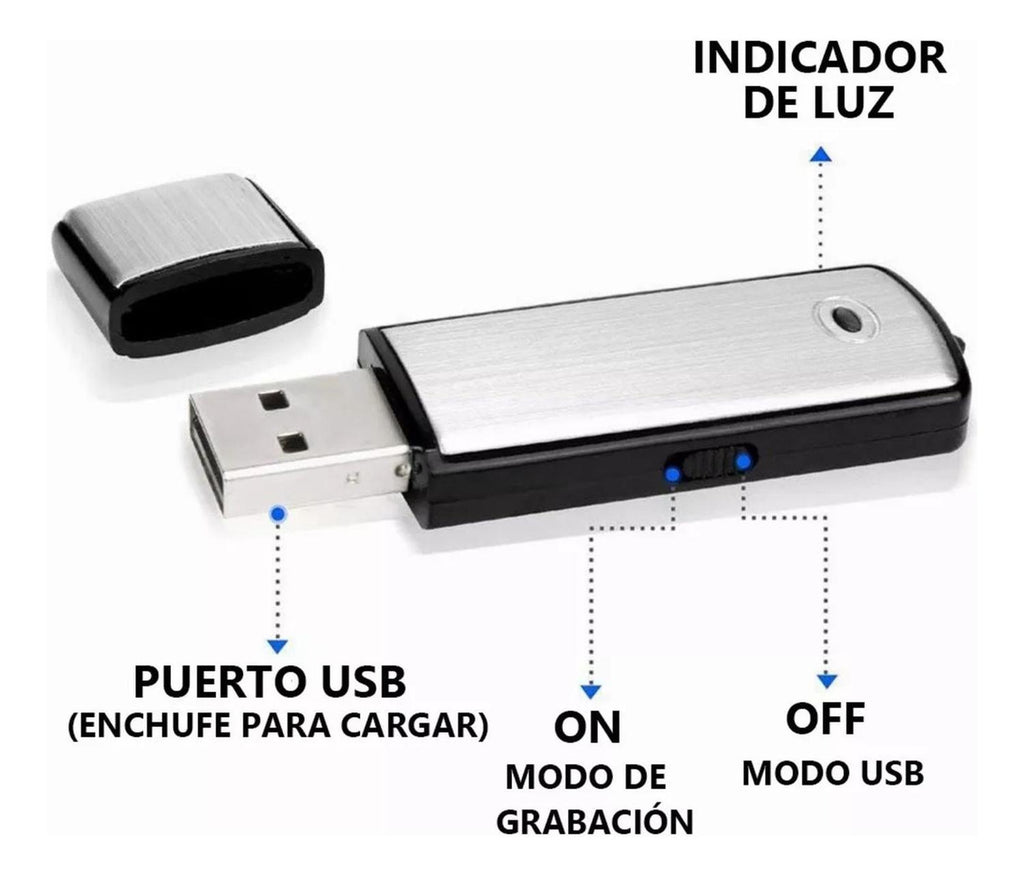 Función principal: Grabar audio y almacenar en unidad USB. Compatible con tabletas y computadoras para acceder a los archivos fácilmente.