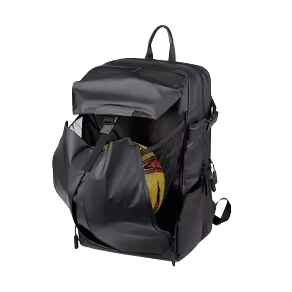 Mochila unisex expandible de nailon impermeable, diseñada para deportes al aire libre y viajes. Con capacidad de 35 litros, ofrece amplio espacio para organizar ropa, documentos tamaño A4, y dispositivos electrónicos como laptops y tablets de hasta 18 pulgadas. Cuenta con bolsillos expandibles frontales ideales para transportar balones y un compartimento interior impermeable para cosméticos y artículos personales. Su diseño versátil es perfecto para actividades como fútbol, natación, gimnasio y escapadas de varios días.