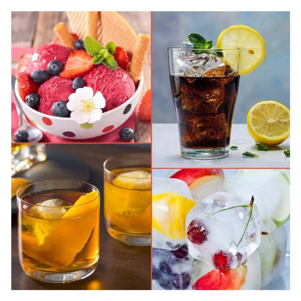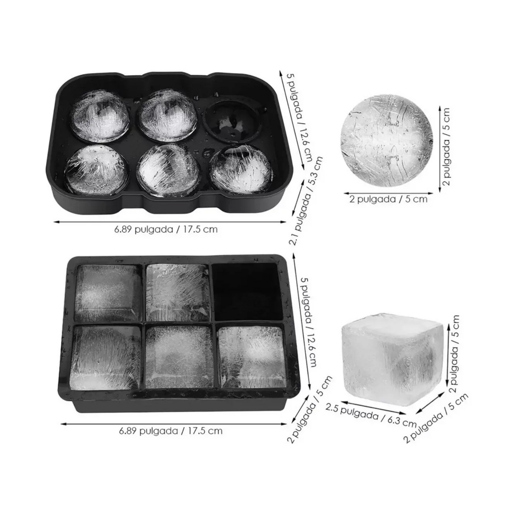 Este molde incluye dos bandejas: una para 6 bolas grandes de 2 pulgadas y otra para 6 cubos grandes de 2 pulgadas, ideales para enfriar bebidas sin diluir su sabor. Su diseño permite un derretimiento más lento, manteniendo las bebidas frescas por más tiempo. También es perfecto para crear paletas, pudines, jaleas de frutas o infusiones, agregando un toque creativo a tus preparaciones. Incluye un pequeño embudo para facilitar el llenado y un diseño compacto que ahorra espacio en tu cocina.