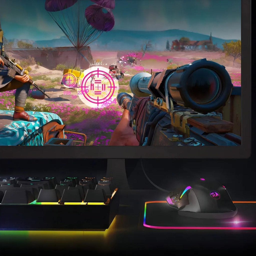 Su diseño ambidiestro ergonómico se adapta a distintos tipos de agarre (palm, claw y fingertip), y el sistema de pesas ajustables te permite personalizar el peso del mouse según tu estilo de juego. Con una frecuencia de respuesta de 1000 Hz, cada movimiento se traduce en acción inmediata, convirtiéndolo en el aliado perfecto para gamers exigentes.