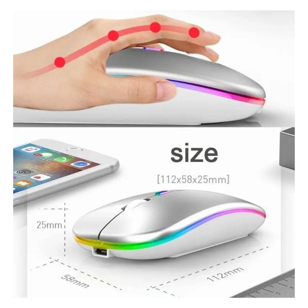 Disfruta de la máxima comodidad y versatilidad con este mouse inalámbrico Bluetooth de doble modo. Puedes conectar dos dispositivos fácilmente, alternando entre Bluetooth 5.1 y la conexión por receptor USB 2.4 GHz, compatible con múltiples sistemas operativos. Su diseño ergonómico y retroiluminado con LED te ofrece estilo y funcionalidad, ideal para juegos y trabajo diario.