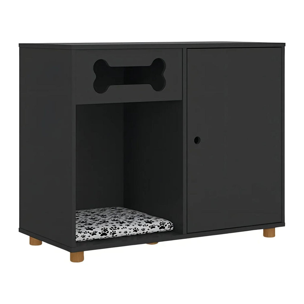 Mueble Cama Mascota Gato Perro 1 Puerta Negro combina funcionalidad y estilo, ofreciendo un espacio cómodo para tu mascota mientras se integra a la decoración de tu hogar. Su diseño incluye un compartimento con puerta y un detalle hueco en forma de hueso, ideal para perros o gatos de tamaño mediano, proporcionando un lugar seguro y acogedor para descansar. Fabricado en MDP resistente, este mueble es duradero y fácil de mantener con limpieza simple.