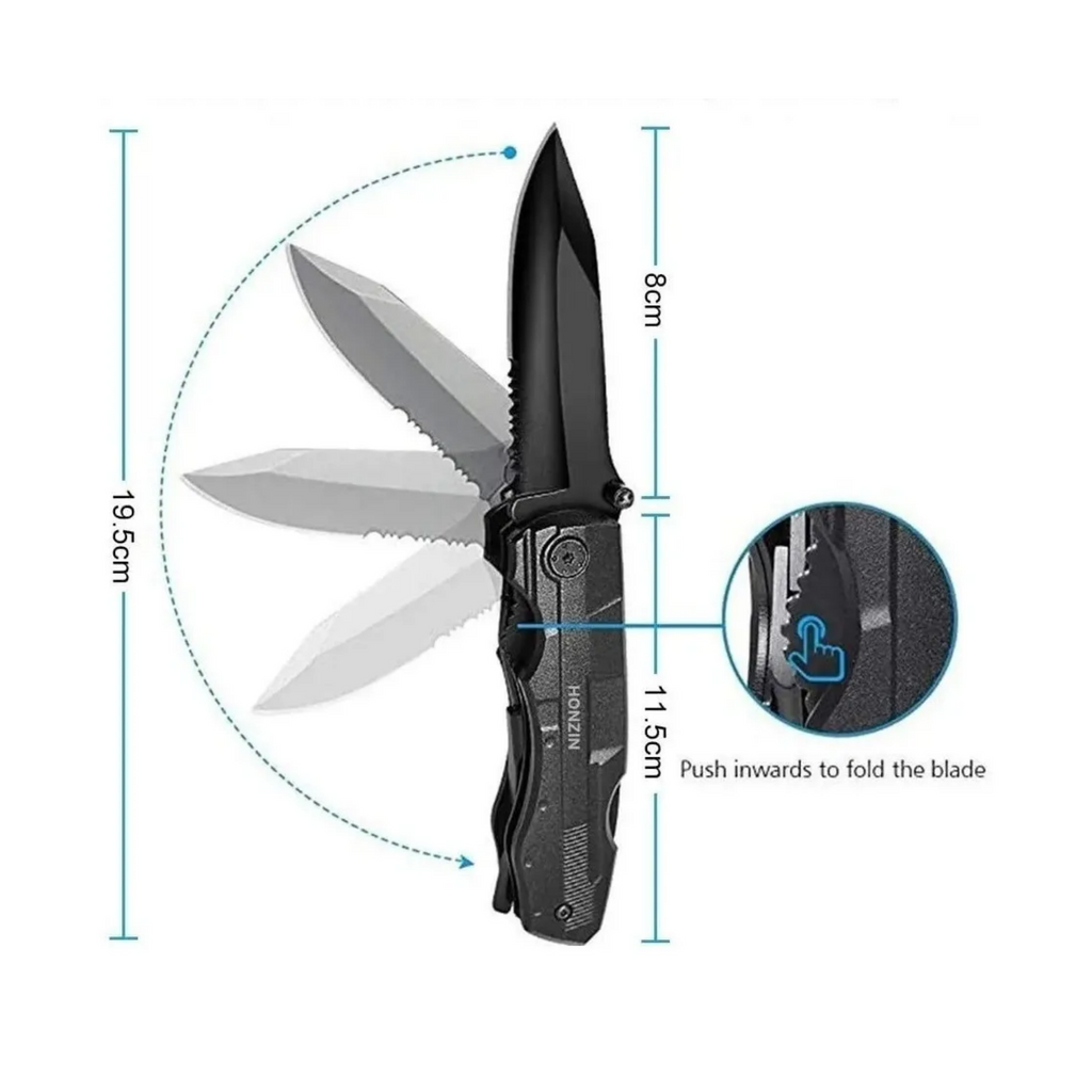 Incluye un kit de 9 puntas de destornillador con conector magnético y una práctica funda de nylon para transportar cómodamente en cinturón o mochila. Con una hoja de 8 cm de largo y apertura semi-automática, esta herramienta es perfecta para aventuras al aire libre, pesca, excursiones o reparaciones cotidianas. Compacta, potente y portátil, se convertirá en tu compañera indispensable.