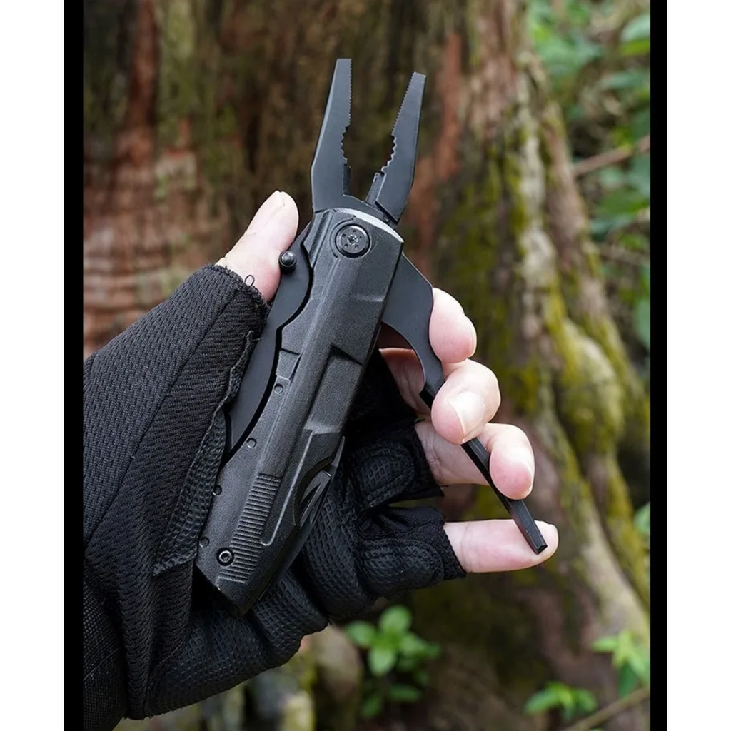 Descubre la versatilidad definitiva con esta Navaja Cuchillo Táctico Militar Multifuncional, ideal para actividades al aire libre, supervivencia o uso diario. Este alicate multitool 16 en 1 incluye desde cuchillas hasta destornilladores Phillips, cortadores de alambre y mucho más, todo fabricado en acero inoxidable de alta resistencia. Su diseño plegable y ergonómico con mango antideslizante garantiza un agarre firme y seguro en cualquier situación.