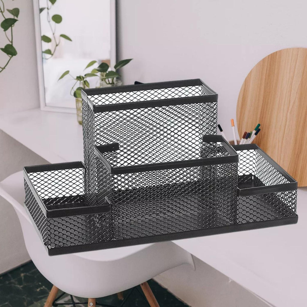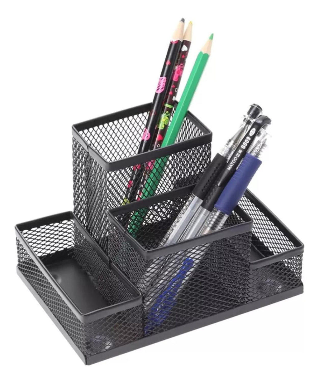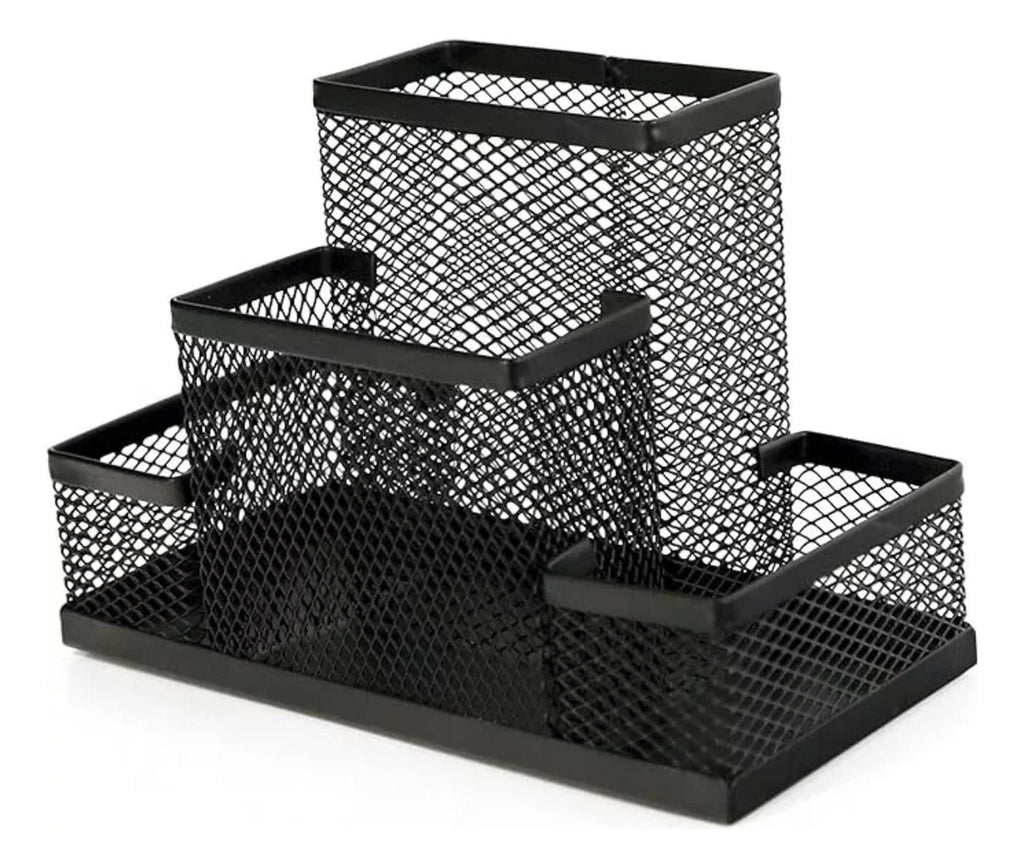Material metálico de alta calidad: malla de hierro pequeña, la pintura no se oxida, se puede utilizar durante mucho tiempo, fuerte y estable: la malla de hierro es clara y clara, evitando grietas. Parte inferior estable: Este portalápices tiene una parte inferior de hierro de metal, con una superficie antiadherente en la parte inferior, lo que hace que el portalápices sea más estable en el escritorio. Diseño hueco completo: el diseño hueco completo mantiene la ventilación y seca completamente, para que el organizador no acumule polvo y sea fácil de limpiar con agua y jabón suave. Tamaño: 10.5 x 15 x 11 cm. Cantidad de Compartimientos: 4 Color: Negro. Material: Alumminio. Desmontable: No. Producto 100% Recomendado. Garantia de 6 Meses.