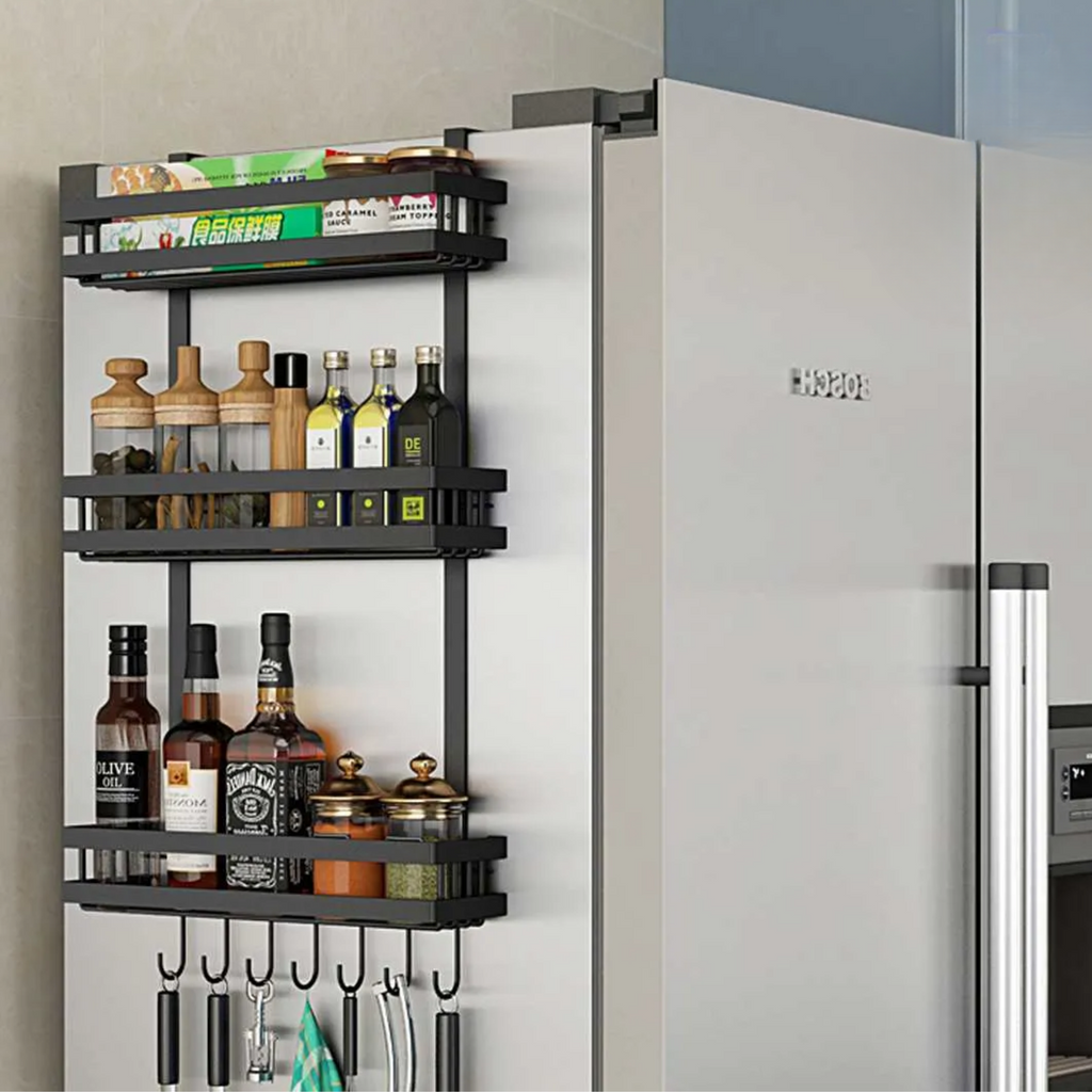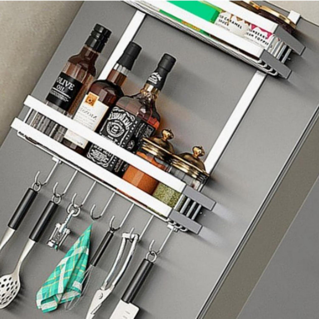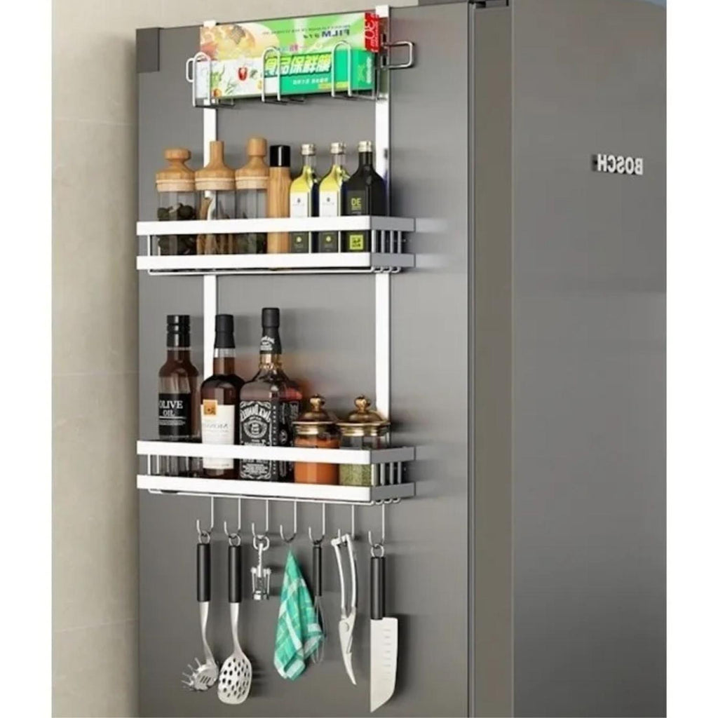 Diseño Simple y Elegante: El estante de almacenamiento simplemente cuelga sobre la parte superior de su refrigerador para que pueda usarlo en cualquier lugar. Puede adherirse fácilmente al refrigerador. También perfecto en un baño, lavadero o dormitorio. No solo es práctico y eficiente, sino que ahora puede decorar su hogar con estilo. Medidas: 48 x 40 x 14.5 cm. Material: Aluminio. Pesos: 760 g. Cantidad: 2 Unidades. Color: Plateado. Producto 100% Recomendado. Garantia de 6 Meses.