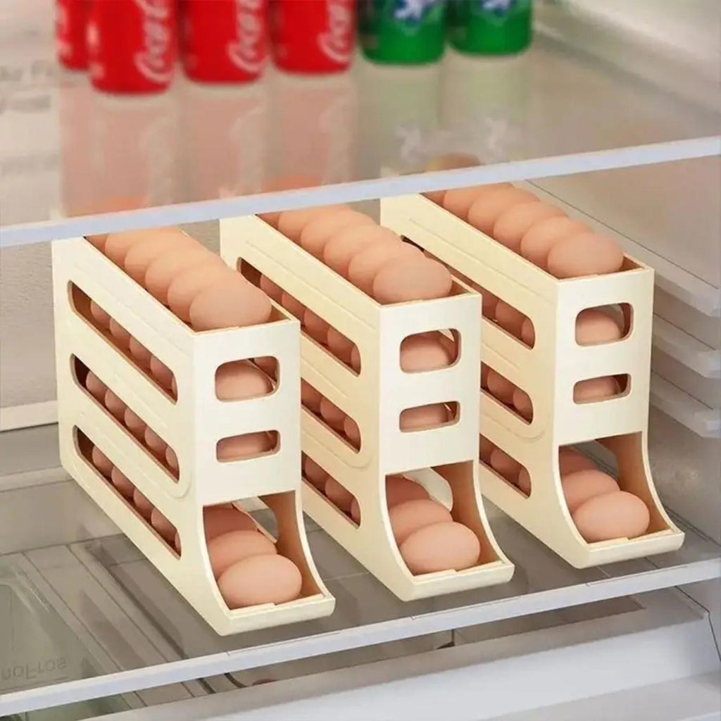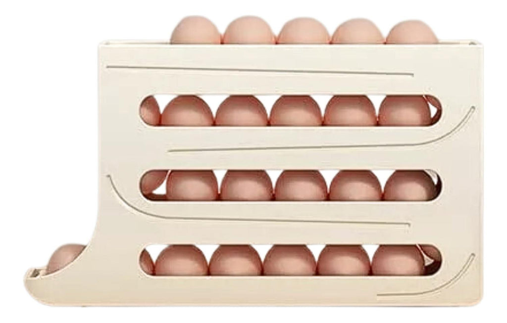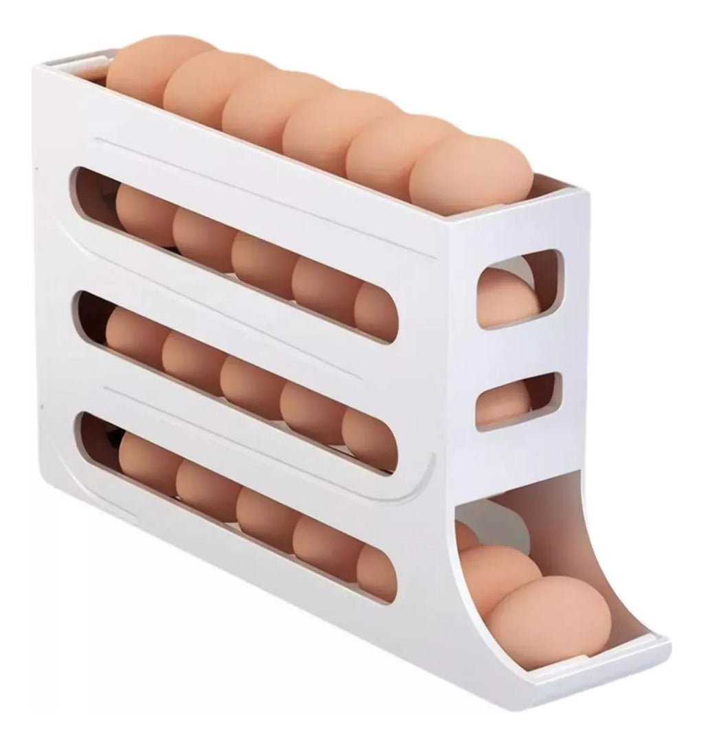 Nuestro dispensador de huevos cuenta con una estructura de gravedad y un diseño de inclinación que ayuda a rodar huevos sin atascarse. Dispensa un huevo a la vez con un suave movimiento de rodamiento, y el resto de los huevos ruedan hacia adelante automáticamente, por lo que no te preocupes por que los huevos se caigan o se vuelquen. Soporte para huevos rodante de 4 niveles, tiene capacidad para aproximadamente 30 huevos. Puede agregar o quitar fácilmente los huevos del dispensador. El pequeño espacio ahorra espacio en tu refrigerador o encimera de cocina y te permite salir de las cajas de cartón y mantenerte limpio y organizado. La protección de barandilla se añade en ambos lados del almacenamiento de huevos para el refrigerador, y la ranura del riel deslizante para huevos se profundiza para hacer que los huevos sean más seguros para colocarlos en él, y los huevos no se romperán debido a la estructura inestable del producto. Medidas: 19.9 x 7 x 35.9 cm. Material: Plástico. Color; Blanco. Cantidad: 30 huevos. Producto 100% Recomendado. Garantia de 6 Meses.