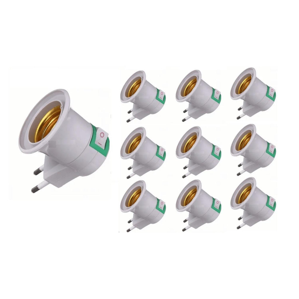 Este pack incluye 10 soquetes para ampolletas con base E27, cada uno equipado con un interruptor integrado para un control fácil y cómodo de la luz. Diseñados para enchufarse directamente a la toma de corriente, estos soquetes son ideales para múltiples usos en el hogar, oficina, o cualquier espacio que requiera una solución práctica y rápida para iluminar. Su diseño en color blanco combina con cualquier decoración, aportando funcionalidad sin perder estilo.