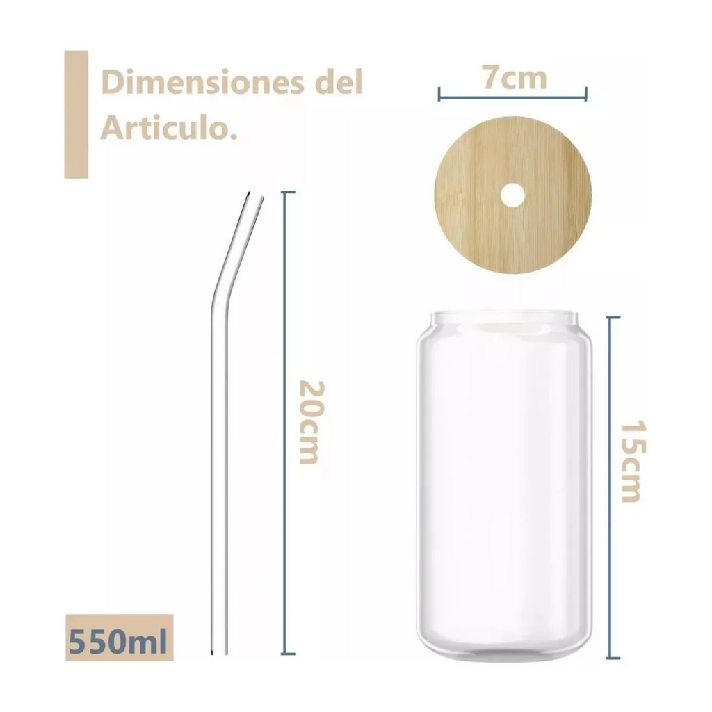 Características principales: • Medidas: 15 cm x 7 cm x 8 cm • Material: Vidrio con tapa de bambú y bombilla reutilizable • Color: Transparente con tapa color natural • Medidas del empaque: 15 cm x 7 cm x 8 cm • Peso del producto: 3.5 kg • Producto 100% recomendado • Garantía: Legal de 6 meses