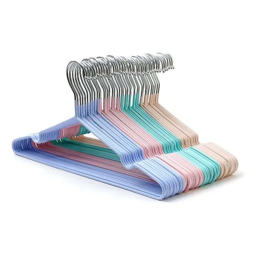 Ideales para cualquier entorno, estos colgadores son resistentes al agua y al óxido, por lo que puedes usarlos con tranquilidad en dormitorios, armarios, baños o lavaderos. Su estructura multipropósito permite colgar desde camisetas y camisas hasta vestidos y suéteres, optimizando el espacio y manteniendo todo en orden. Cada colgador mide 20 cm de alto por 40 cm de largo.