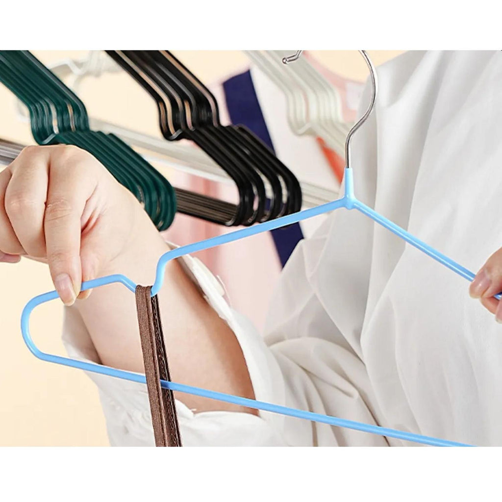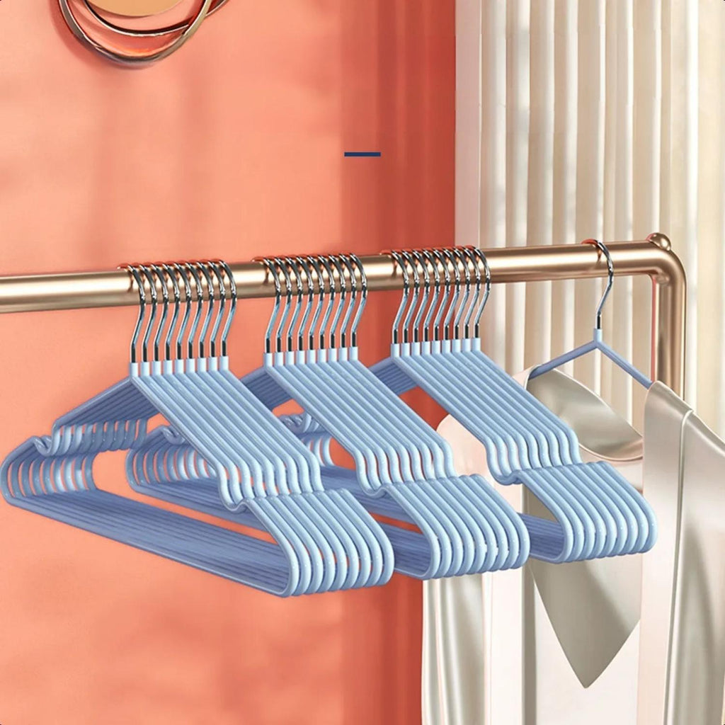 Mantén tu armario organizado con este pack de 100 colgadores antideslizantes en color azul. Diseñados con metal y caucho ecológico de alta calidad, estos ganchos soportan prendas pesadas como abrigos y trajes, asegurando que tu ropa permanezca estable y libre de arrugas. Su diseño antideslizante permite que las prendas se mantengan en su lugar, evitando caídas y deslizamientos indeseados.