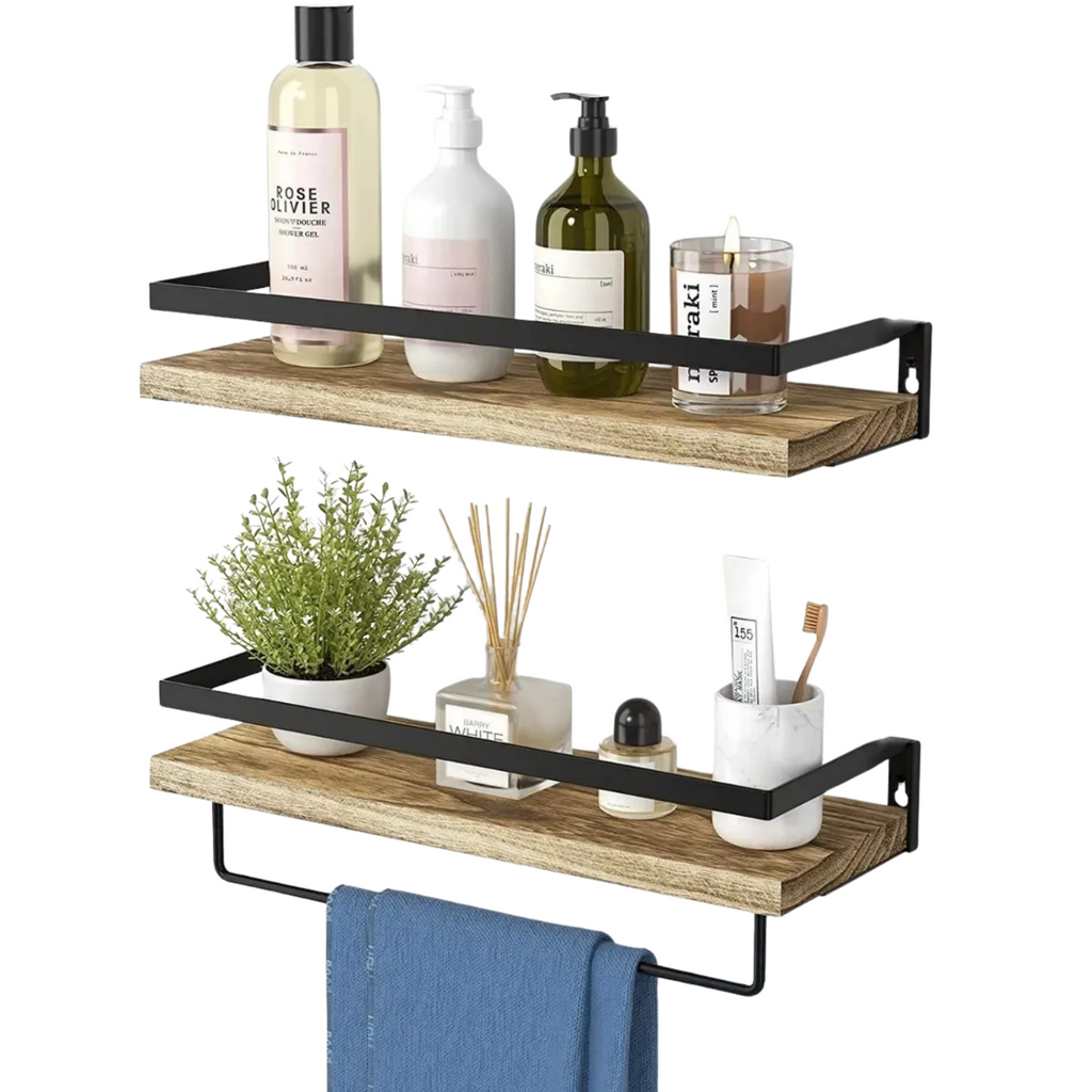 Su protector de 3 lados mantiene tus artículos seguros, mientras que la barra de toalla desmontable agrega funcionalidad extra para colgar toallas, ropa o accesorios según lo necesites. Ideales para salas, dormitorios, baños o cocinas, estas repisas flotantes transforman tus espacios en lugares organizados y con estilo. La instalación es rápida y sencilla, adaptándose a paredes de madera, yeso o concreto.