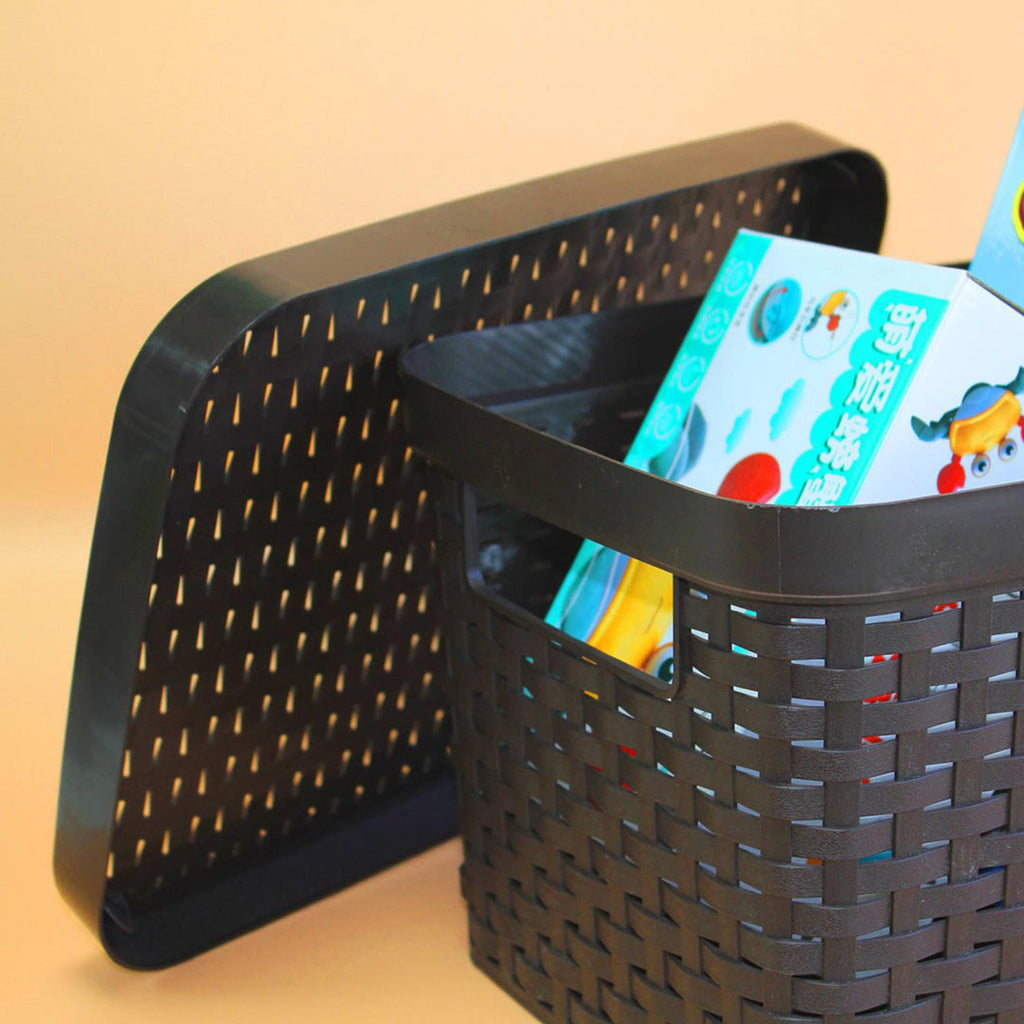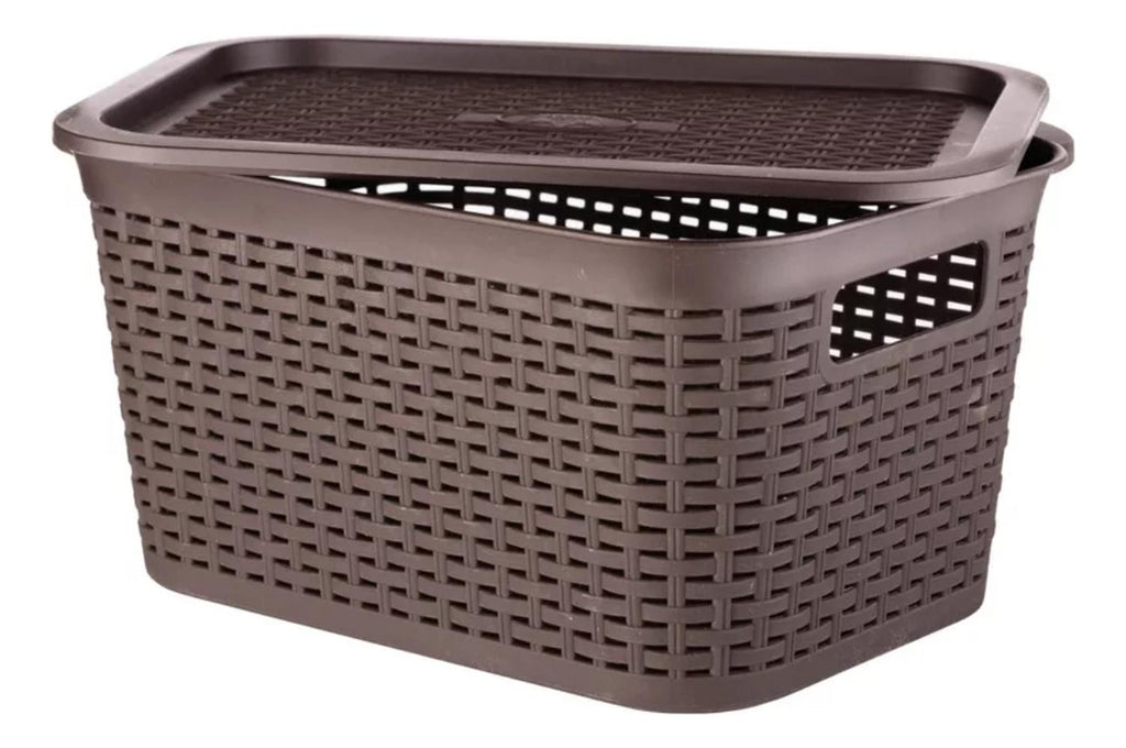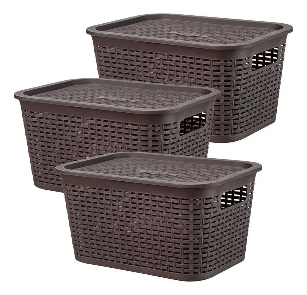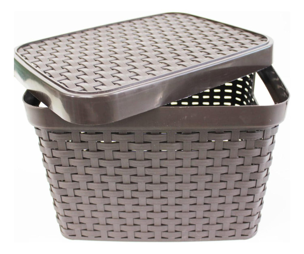 Caja Organizadora Ratán 6 Lt. / Pack 3 Un. Color Marrón Oscuro' es una canastilla de material plástico con diseño de ratán. Es perfecta para mantener ordenados y organizados los artículos del hogar, trabajo, entre otros. También es útil para mantener ordenadas las prendas de vestir y otros artículos en general. Medidas: 15 x 21 x 29 cm. Material: Plástico. Peso: 296 gr. Capacidad: 6.5 L. Color: Café Oscuro. Producto 100% Recomendado. Garantia de 6 Meses.