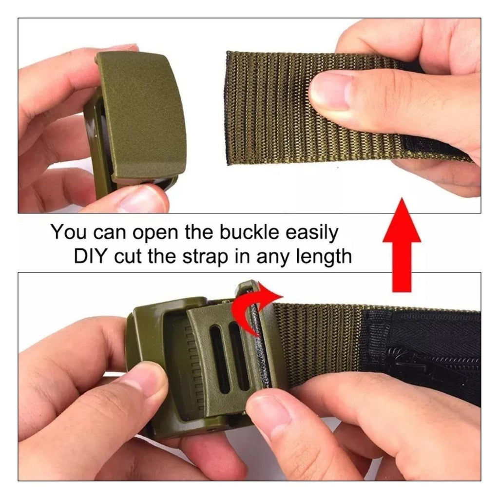 Cada cinturón cuenta con una longitud ajustable de entre 110 y 125 cm, lo que permite adaptarlo cómodamente a distintas tallas. Además, incorpora un práctico gancho triangular frontal para sujetar accesorios y mantenerlos al alcance. Son una opción duradera y confiable para quienes practican senderismo, camping, trabajo táctico o buscan seguridad y estilo en el uso diario.