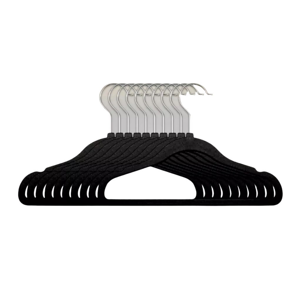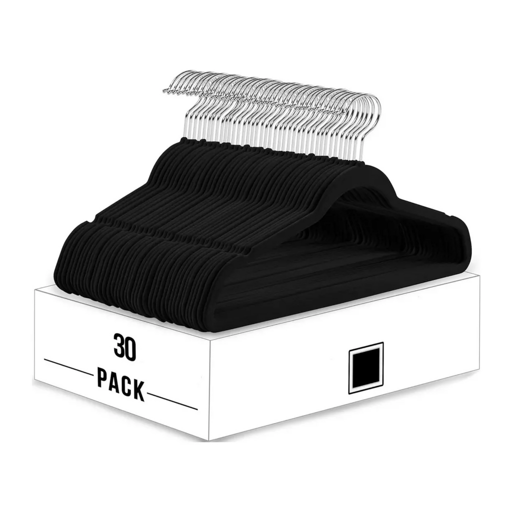 Pack de 30 colgadores de ropa de terciopelo antideslizante, diseñados para mantener tu clóset organizado, uniforme y libre de desorden. Su superficie aterciopelada evita que las prendas se deslicen, mientras que su diseño ergonómico imita la silueta del hombro, protegiendo tu ropa de arrugas y deformaciones.