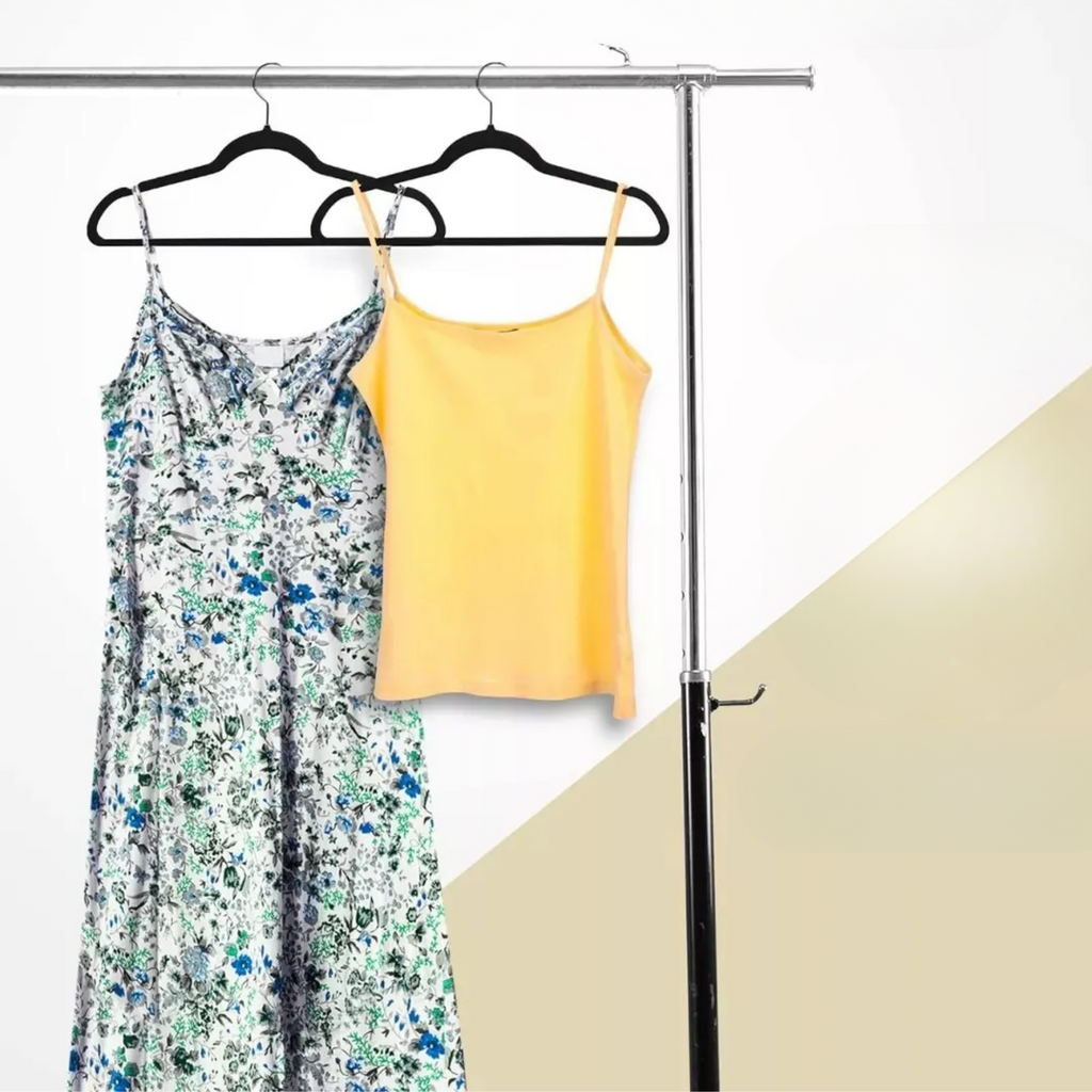 Cada colgador cuenta con un gancho de acero inoxidable con rotación de 360° para mayor comodidad, además de ranuras en los costados y barra inferior para colgar múltiples prendas y accesorios al mismo tiempo, optimizando el espacio en tu armario.