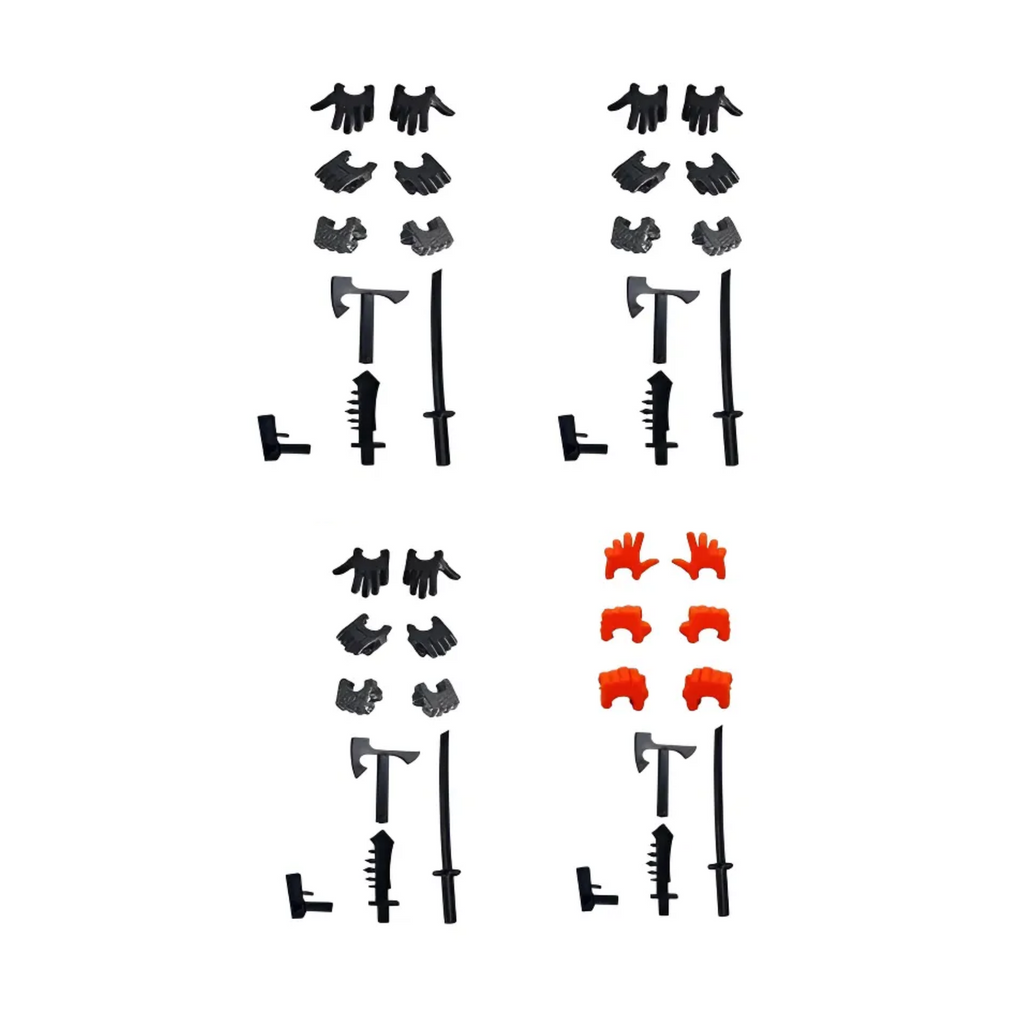 Incluye: • 4 robots para ensamblar (altura de cada uno: 14 cm) • 6 armas intercambiables • 3 gestos reemplazables • Colores: azul + naranja, azul, blanco, rojo