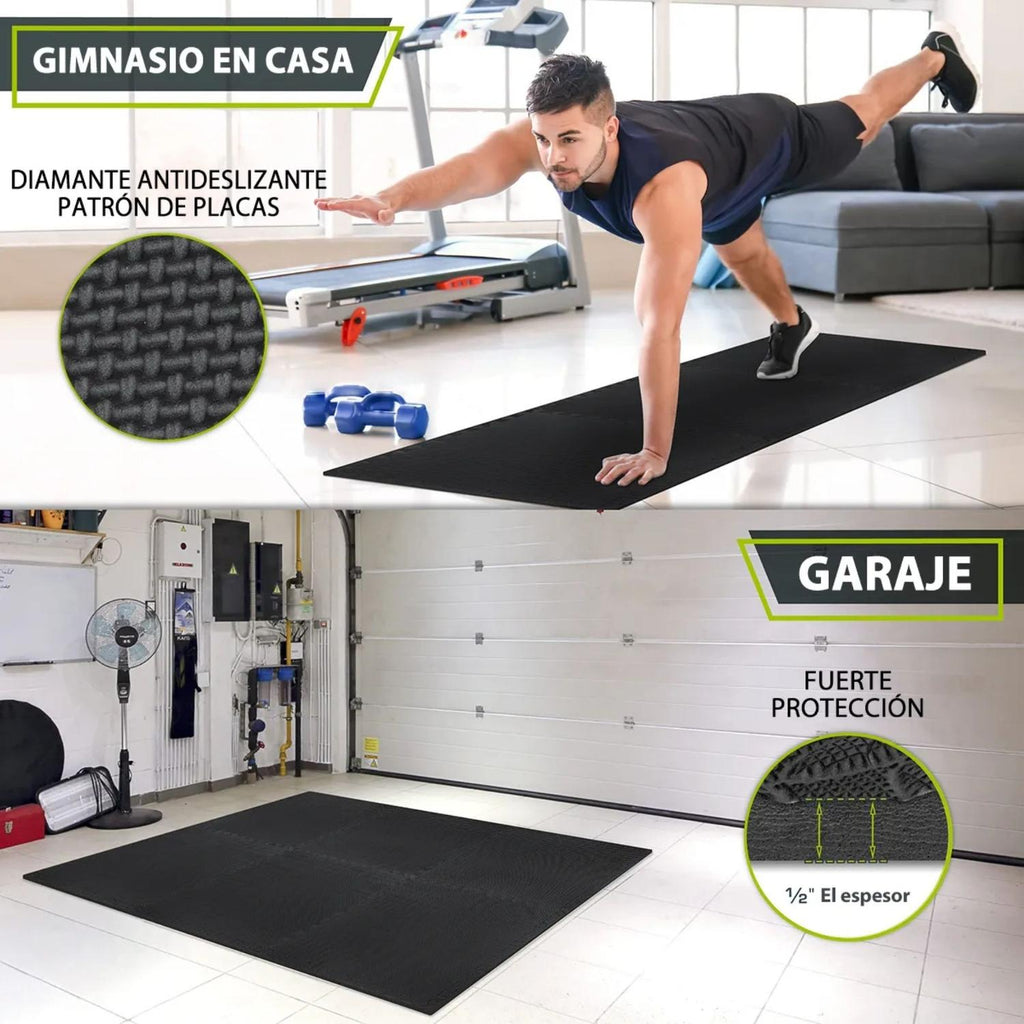 Fabricadas con espuma EVA de alta densidad, estas alfombras ofrecen un excelente soporte y amortiguación, libres de ftalatos tóxicos. Son fáciles de limpiar y mantener, resistentes al agua y reducen el ruido, convirtiéndolas en una opción práctica y segura para cualquier ambiente interior. Cada pieza mide 60 cm de ancho por 60 cm de largo y 1 cm de espesor.