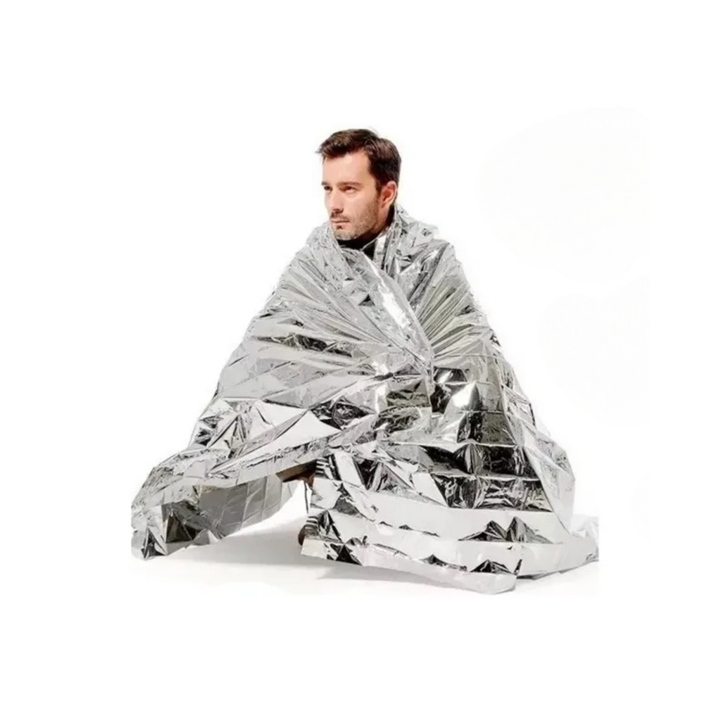 Manta térmica de emergencia, ultraligera y resistente. Ideal para conservar el calor corporal, proteger contra el viento y la humedad, y servir como señal reflectante en rescates. Perfecta para actividades al aire libre y situaciones de emergencia.