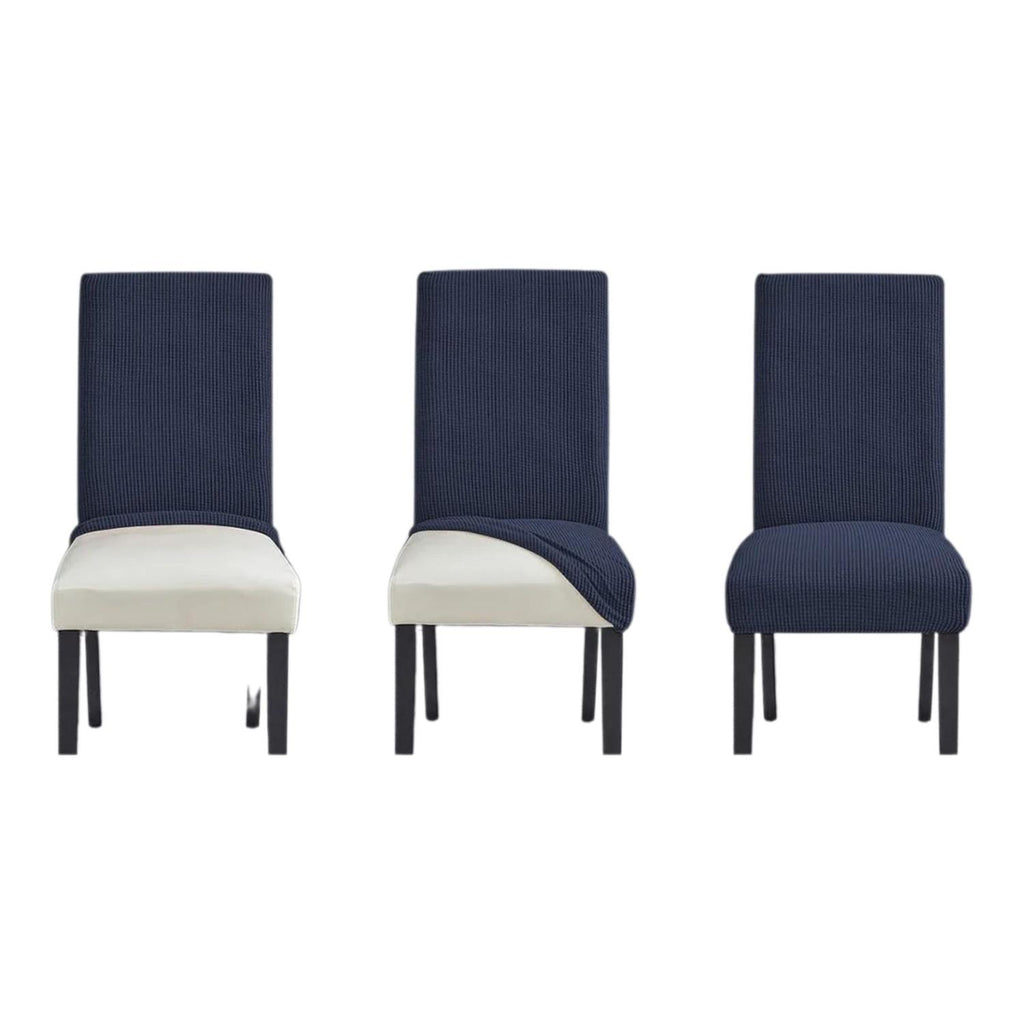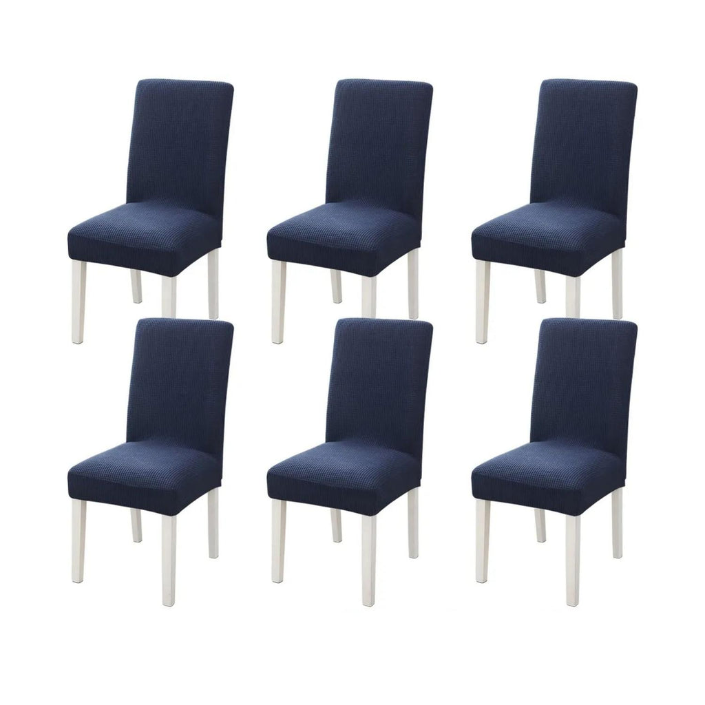 Renueva el aspecto de tus sillas con facilidad. Este pack de 6 fundas elásticas para comedor en azul oscuro es ideal para proteger y modernizar tus muebles. Su tela elástica se ajusta perfectamente y da un toque elegante a tu comedor.