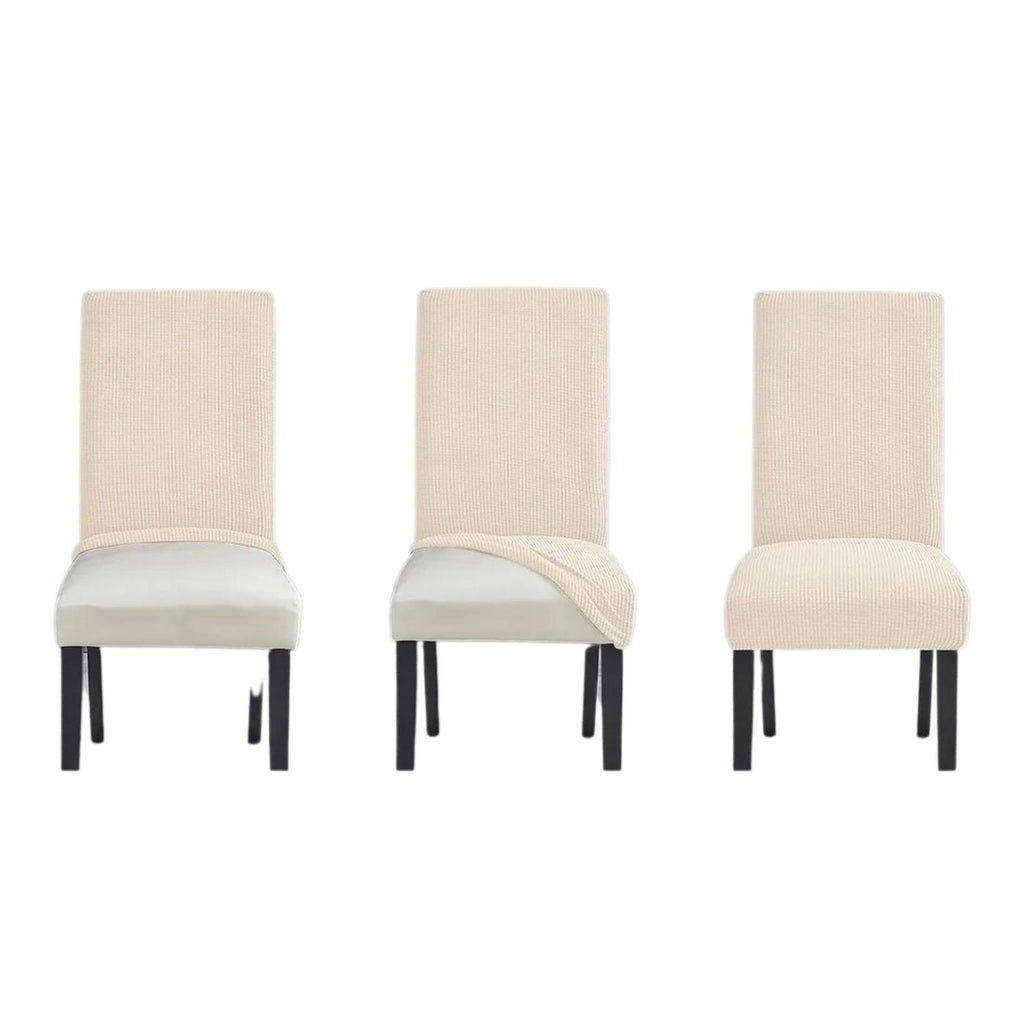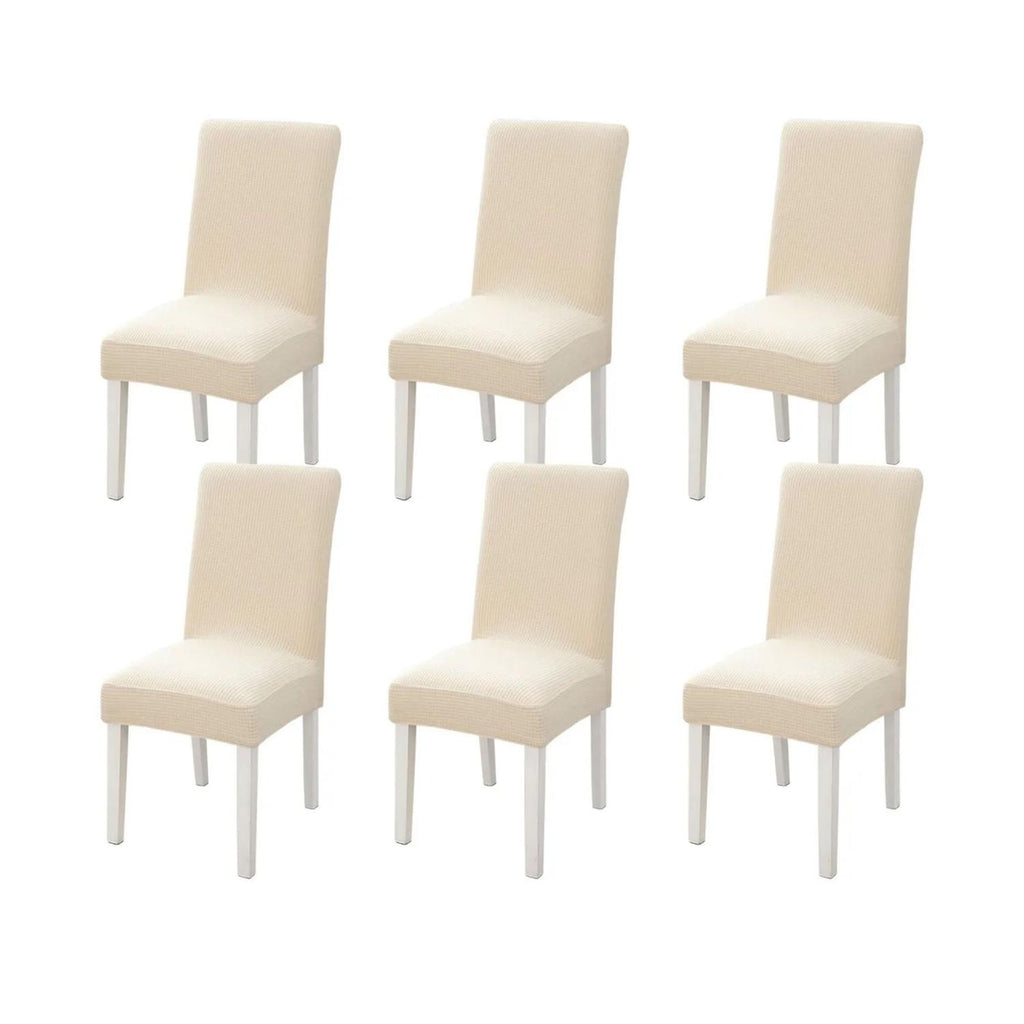Renueva el aspecto de tus sillas con facilidad. Este pack de 6 fundas elásticas para comedor en beige es ideal para proteger y modernizar tus muebles. Su tela elástica se ajusta perfectamente y da un toque elegante a tu comedor.