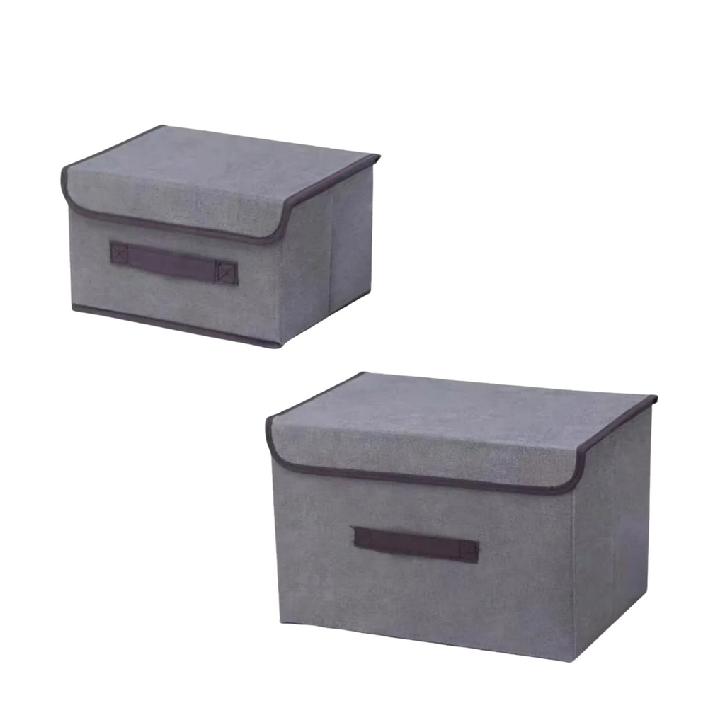 Características principales: • Medidas: Caja grande 36 x 23 x 24 cm, Caja pequeña 26 x 16 x 19 cm • Material: Tela con soporte de cartón • Color: Gris • Medidas del empaque: 36 x 23 x 24 cm • Peso del producto: 1,8 kg • Producto 100% recomendado • Garantía: Legal de 6 meses