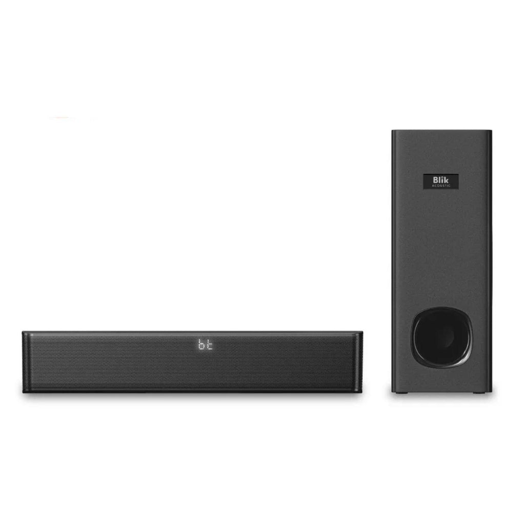 Equipada con Bluetooth 5.0 y múltiples opciones de conectividad como HDMI, AUX, USB y entrada óptica, asegura compatibilidad con diversos dispositivos. Su diseño moderno en color negro se adapta fácilmente a cualquier ambiente, mientras que el control remoto incluido brinda comodidad total en el manejo de funciones.