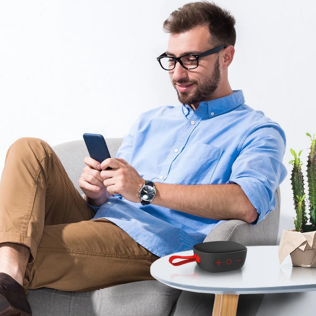 Llevá tu música a donde vayas con el parlante portátil Master-G. Su diseño compacto, resistente lo convierte en el compañero ideal para tus aventuras al aire libre, ya sea en la playa, la montaña o tus rutinas deportivas.