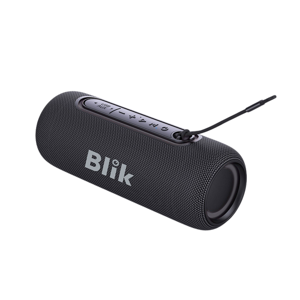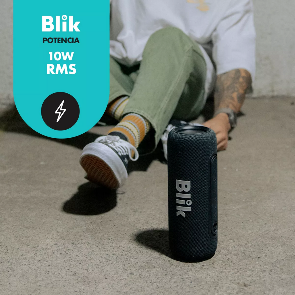 Parlante Bluetooth Blik Live 10W Negro presentado en un diseño compacto y ligero, ideal para llevar tu música a todas partes con estilo y potencia.