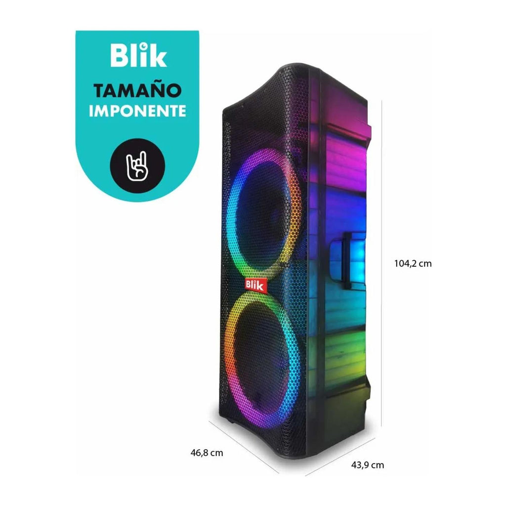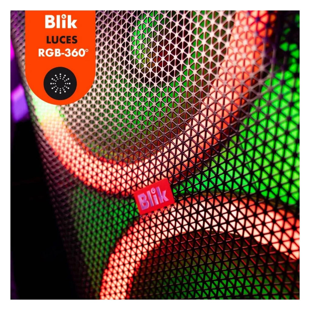 Disfruta de una experiencia de audio y espectáculo visual con el Blik Light360, un parlante potente de 45.000W PMPO y woofer de 15” que llena cualquier espacio con un sonido intenso y profesional. Sus luces RGB 360 crean una atmósfera vibrante, ideal para fiestas y eventos, mientras que su control remoto y múltiples entradas facilitan la reproducción de música desde distintos dispositivos. Este equipo combina potencia y estilo para un entretenimiento sin límites.