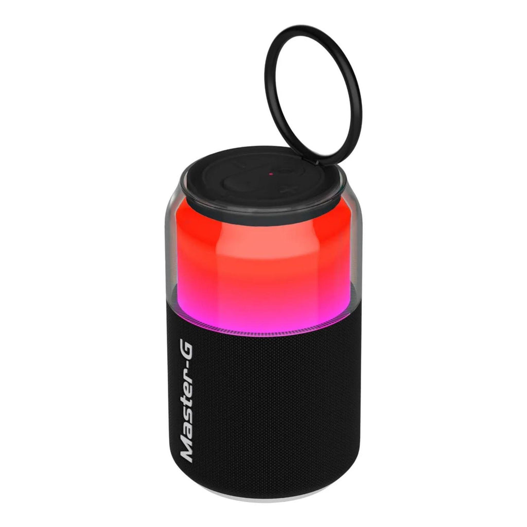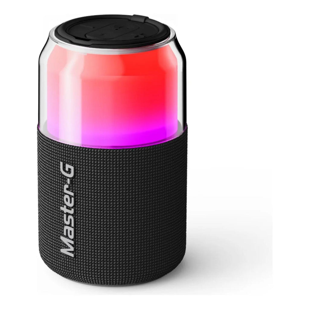 Disfruta de tu música favorita en cualquier lugar con el Parlante Portátil Master-G LED Splash de 5W. Su diseño compacto en forma de lata con anillo colgante y luces LED RGB te permite llevarlo a todos lados y crear un ambiente divertido mientras escuchas tus canciones. Cuenta con conectividad Bluetooth 5.4, puerto USB, reproducción MP3 y función True Wireless Stereo (TWS) para conectar dos parlantes y lograr un sonido estéreo envolvente. Su resistencia IPX3 protege el dispositivo de salpicaduras de agua, ideal para exteriores.