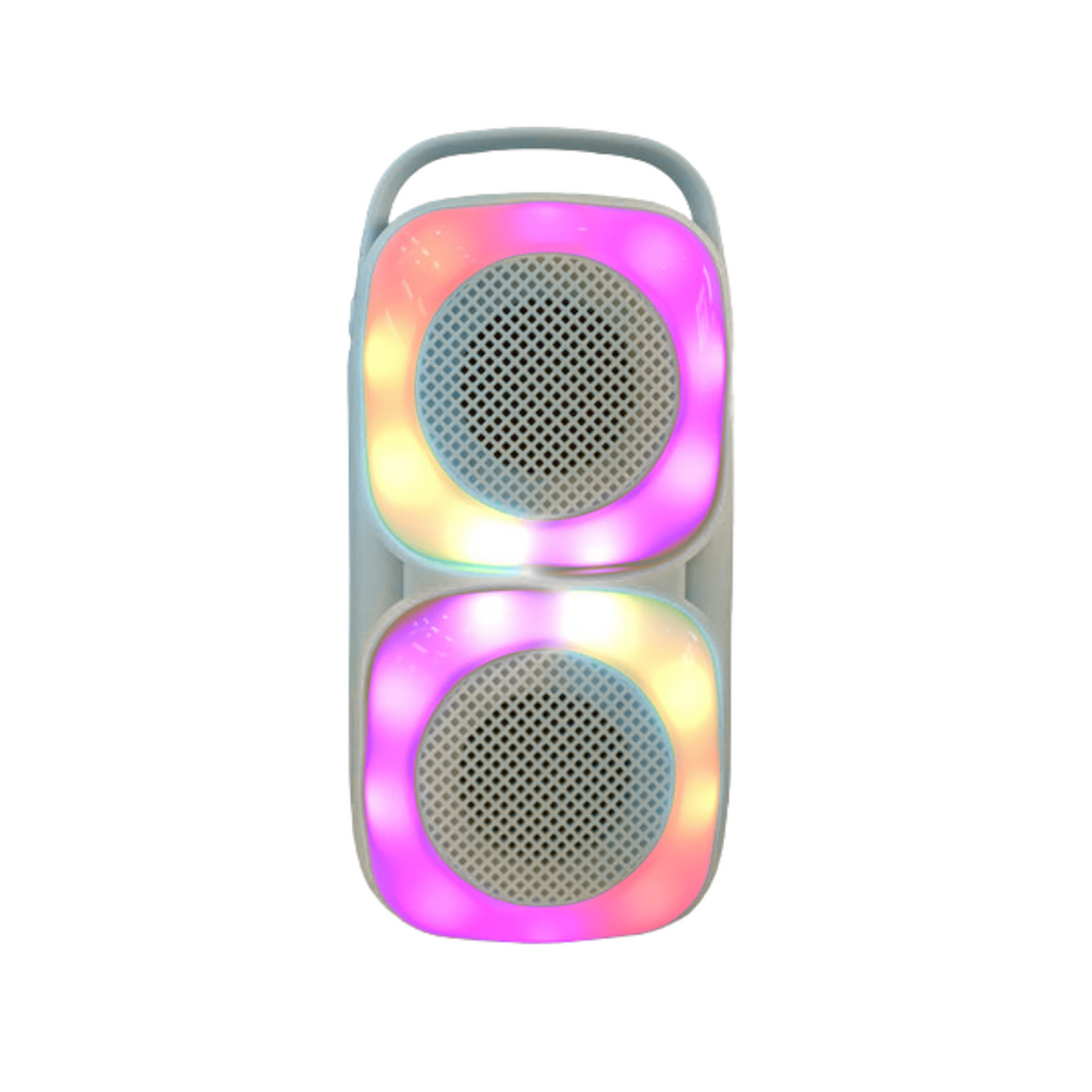 Estos mini parlantes inalámbricos son la combinación perfecta de estilo y funcionalidad. Con su diseño compacto y portátil, podés llevarlos a donde quieras. Conectá tu celular u otro dispositivo Bluetooth y disfruta de tu música favorita con un sonido claro y potente. Las luces LED multicolores generan un ambiente festivo ideal para cualquier ocasión.