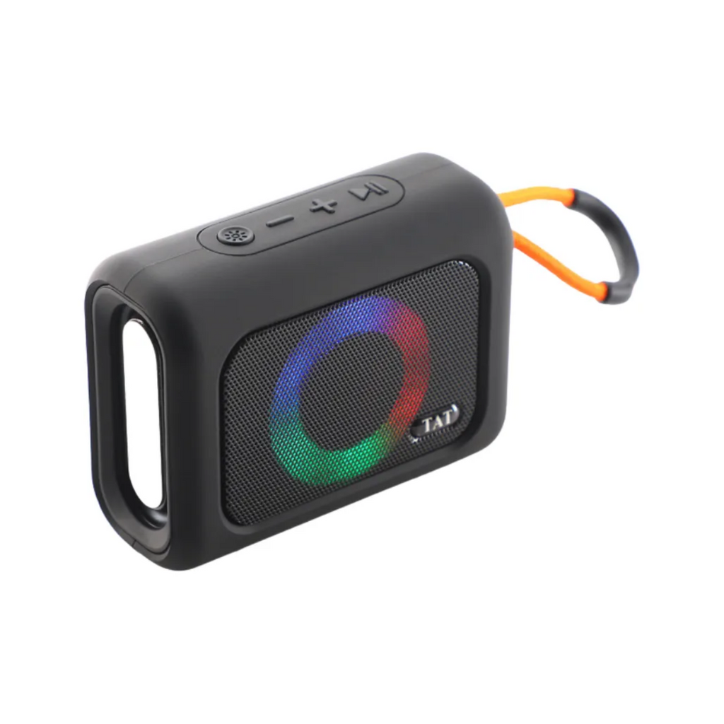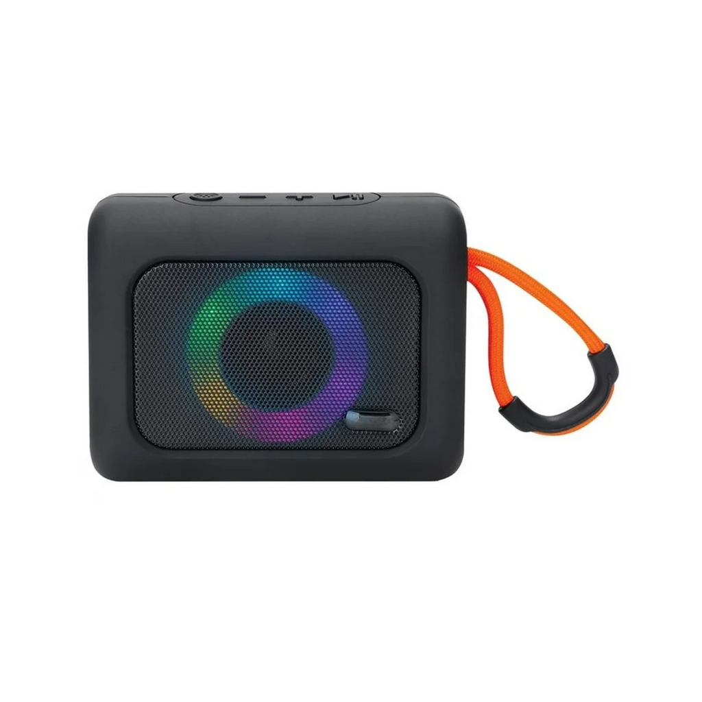Características principales: • Potencia de salida: 5 W RMS • Cantidad de parlantes: 1 • Iluminación LED integrada • Portátil y inalámbrico • Autonomía máxima de batería: 7 horas • Conectividad Bluetooth • Alimentación: recargable por USB • Accesorios: correa de transporte • Color: Negro • Producto 100% recomendado • Garantía legal: 6 meses
