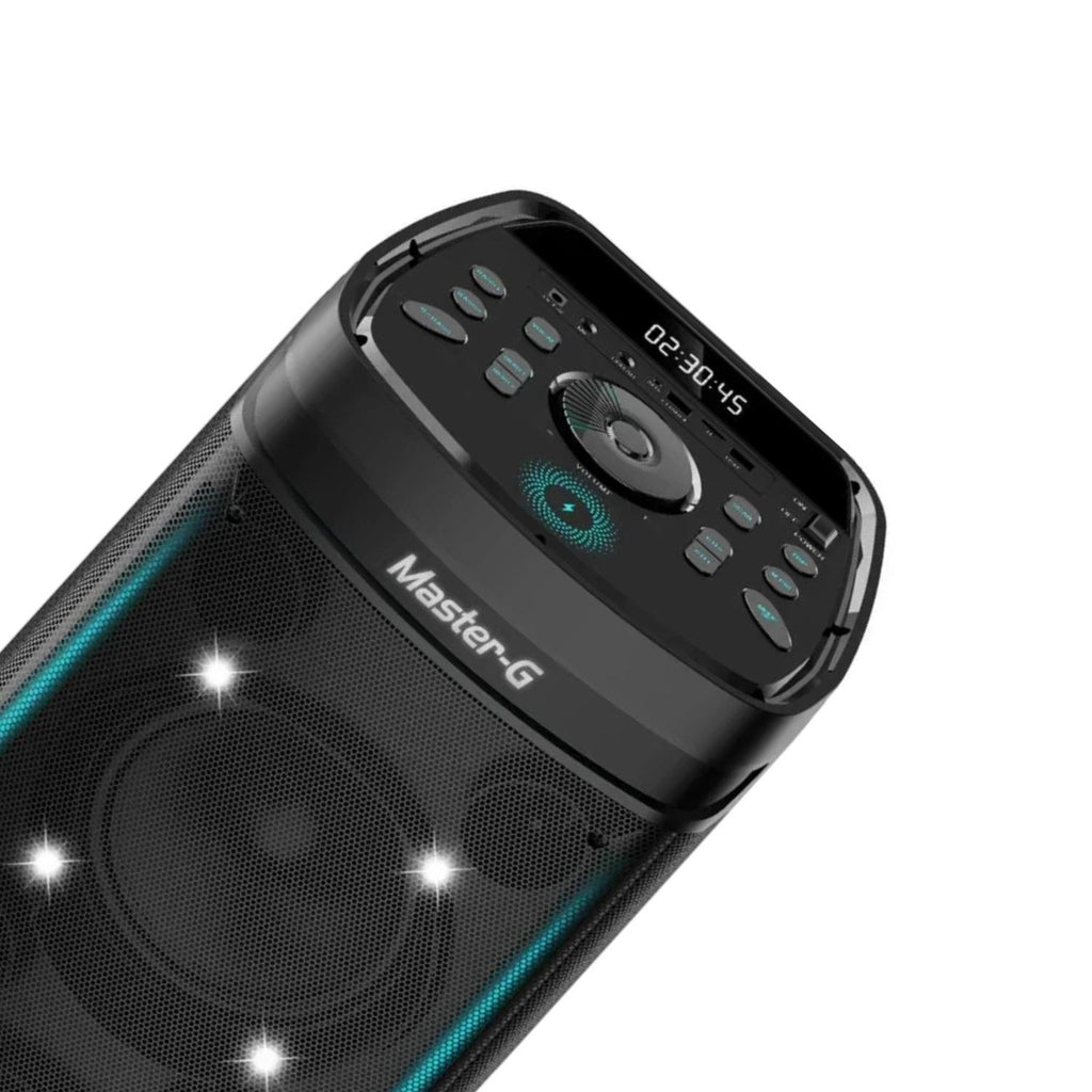 Disfruta de un sonido potente y envolvente con el parlante Master-G ElectroVibes de 60 W, diseñado para sesiones de karaoke y entretenimiento en casa. Su tecnología activa permite amplificar la música sin necesidad de equipos adicionales, ofreciendo claridad y precisión en cada nota. Con carga inalámbrica y conectividad versátil, este parlante combina practicidad y rendimiento, ideal para reuniones, fiestas o uso personal. Su diseño moderno y resistente facilita el transporte y la ubicación en cualquier espacio.