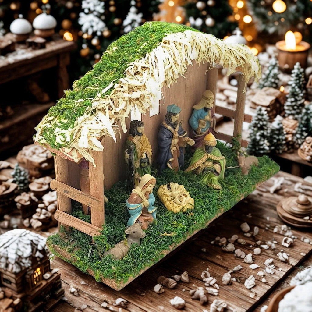 ¡Trae la tradición y la magia de la Navidad a tu hogar! Este hermoso Pesebre Nacimiento está cuidadosamente diseñado con 9 piezas de 10 cm, hechas en resina tipo cerámica en frío, que simulan la textura natural de la madera. Cada figura ya viene coloreada y ensamblada, lista para colocar en cualquier rincón y llenar tu hogar de espíritu navideño.