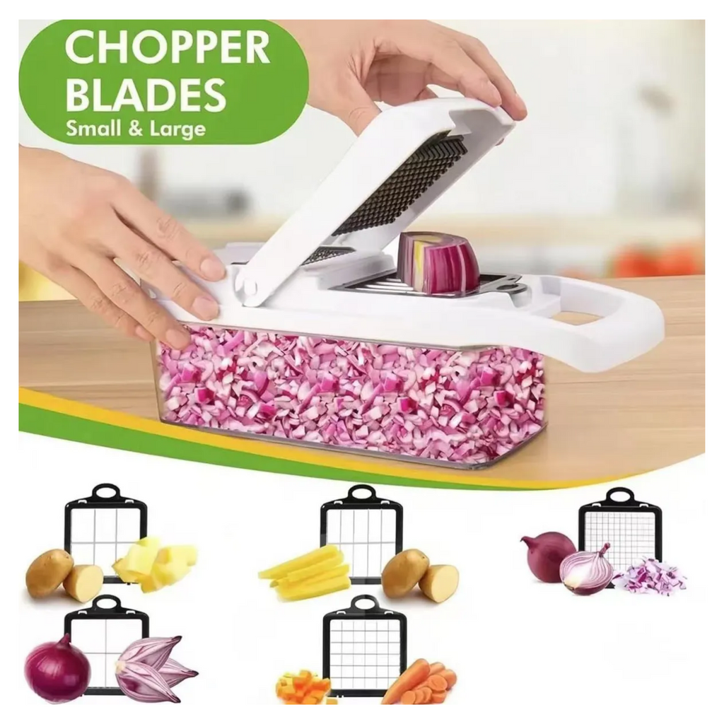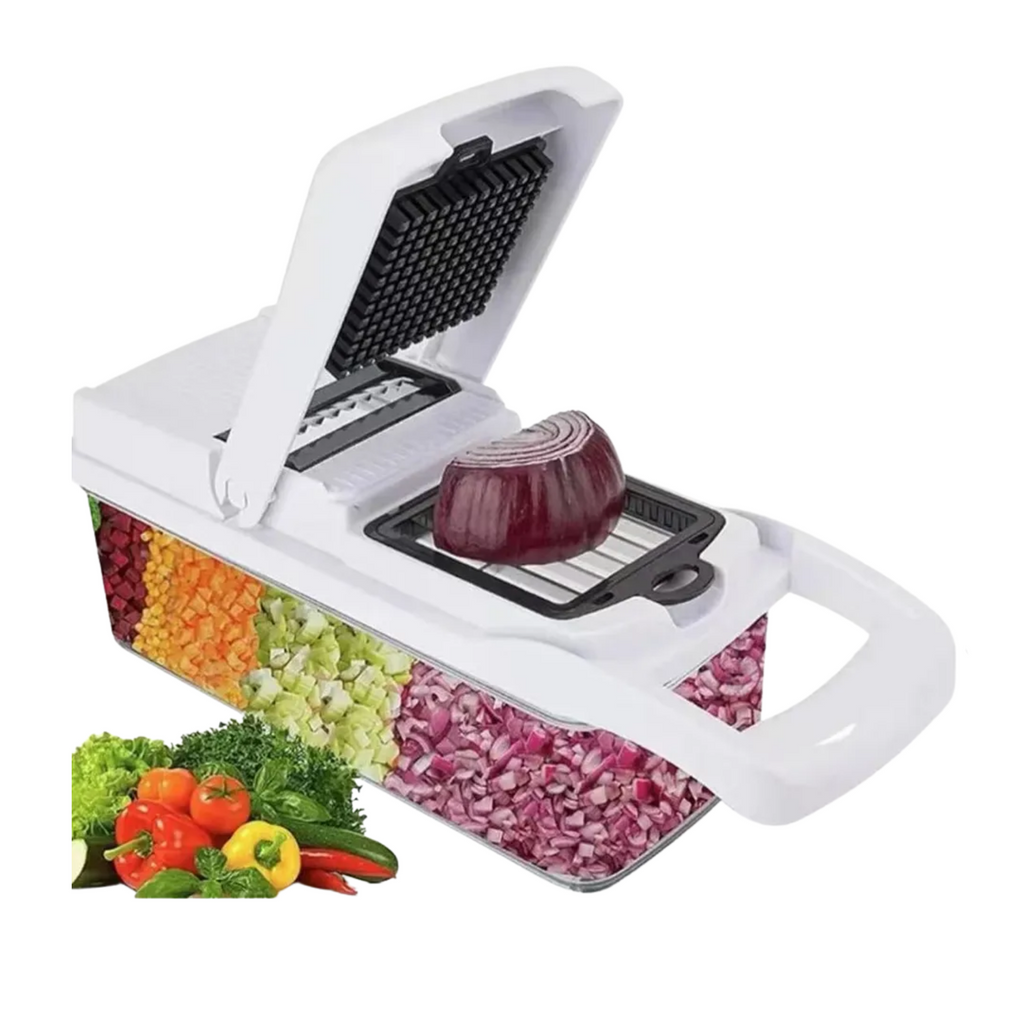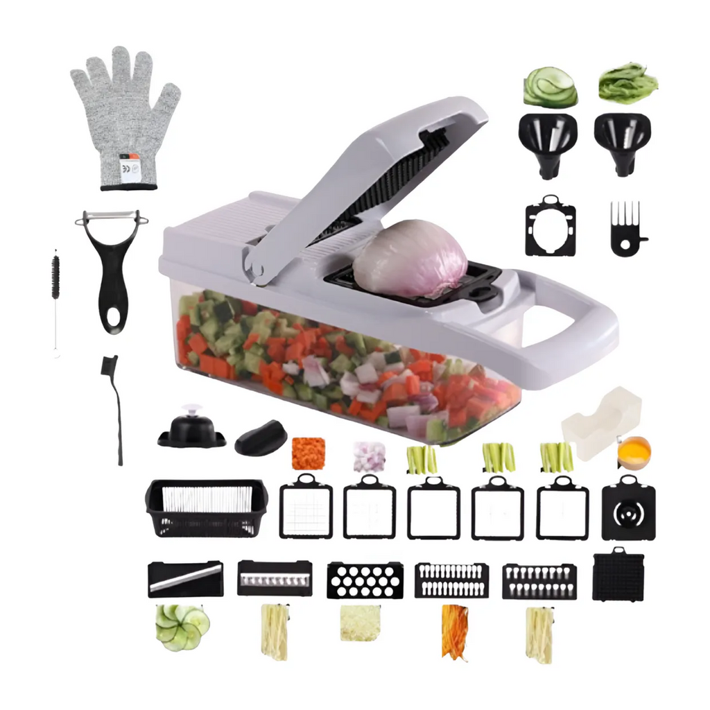 Optimiza tu cocina con este Picador Cortador de Verduras Multifuncional 26 en 1, ideal para cortar, rallar, rebanar y espiralizar frutas y verduras con facilidad. Fabricado con acero inoxidable resistente al óxido y materiales de grado alimenticio, ofrece cortes precisos y limpios, convirtiéndolo en un utensilio esencial para preparar ensaladas y platillos saludables de manera rápida y segura. Incluye guantes resistentes a cortes y un protector de mano para proteger tus dedos mientras cocinas.