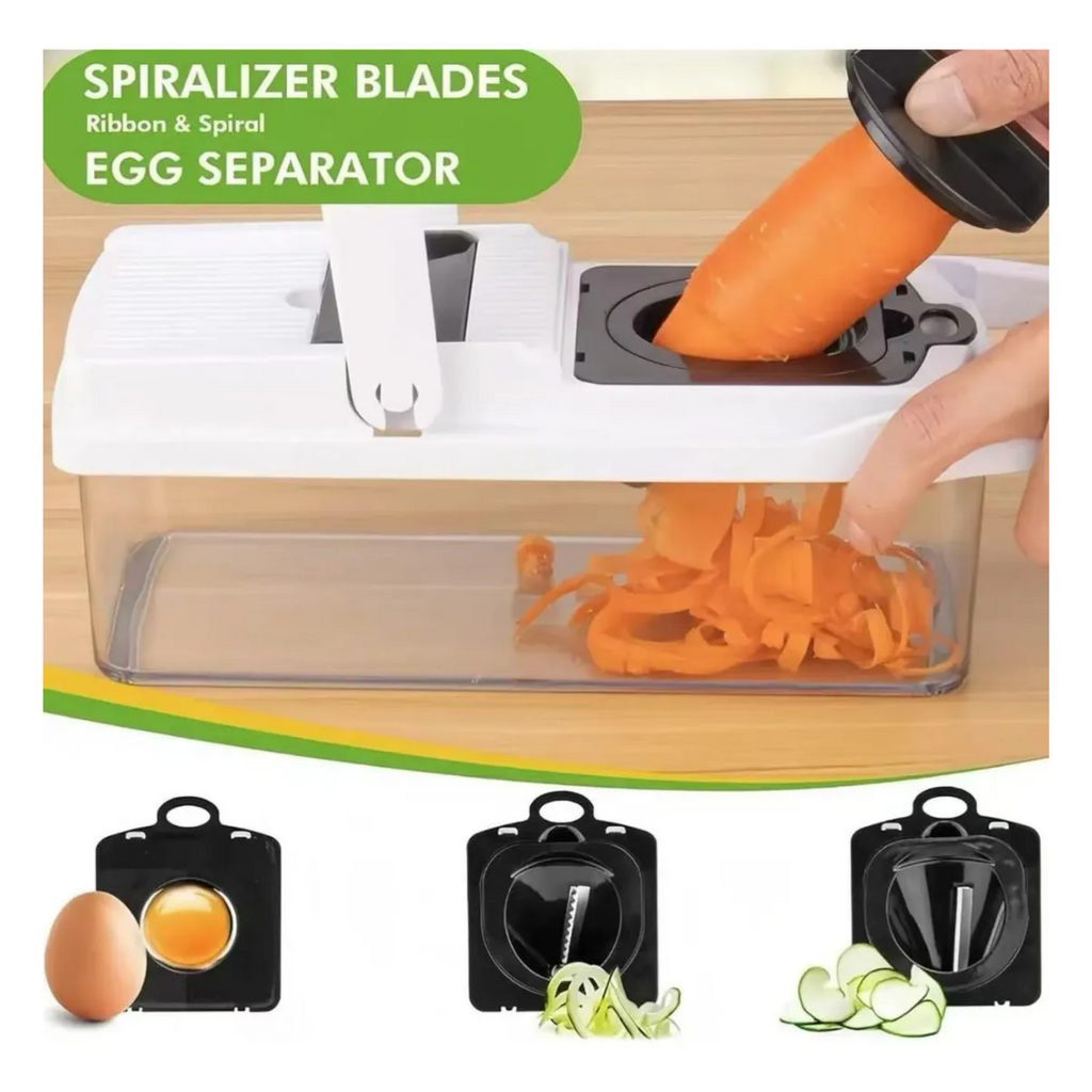 Este kit completo cuenta con 11 cuchillas intercambiables, caja de almacenamiento compacta, cesta de enjuague, separador de huevos y tres cepillos de limpieza, facilitando tanto la preparación como la limpieza. Perfecto para quienes buscan eficiencia y diversión en la cocina, permite añadir variedad de verduras a tus comidas en menos tiempo y disfrutar más de tus momentos con la familia.
