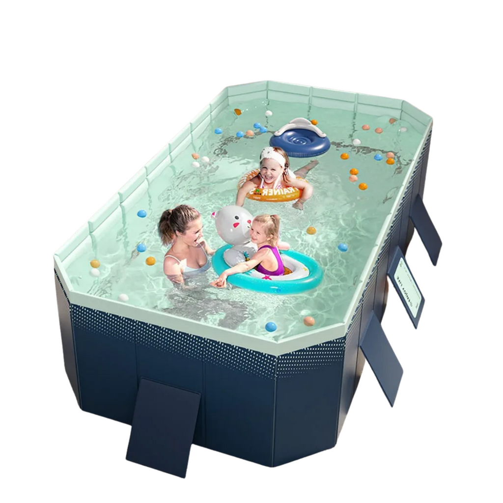 Piscina Rectangular Familiar Azul, perfecta para que los niños disfruten refrescantes momentos en casa durante el verano. Fabricada con materiales duraderos y no tóxicos, esta piscina ofrece seguridad y resistencia para un uso prolongado. Su diseño plegable facilita el almacenamiento, ocupando un espacio mínimo cuando no está en uso, y su armado es rápido y sencillo, sin necesidad de herramientas.