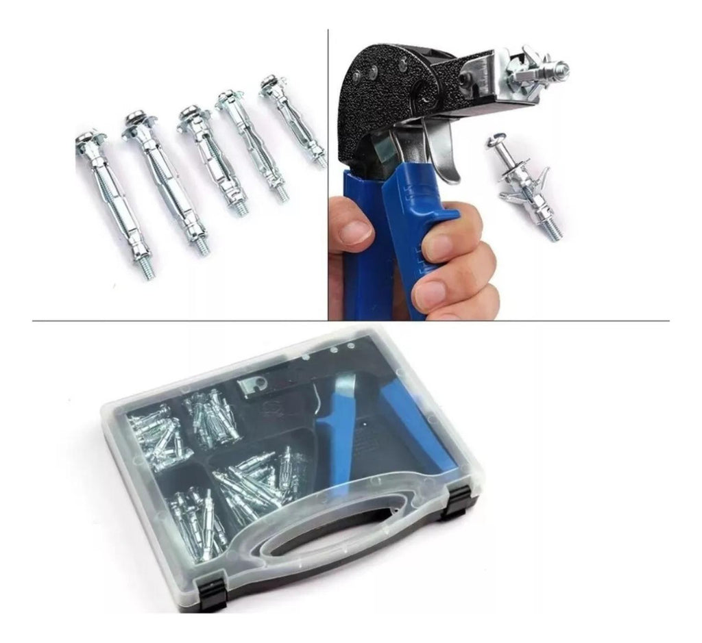 La herramienta de ajuste está diseñada para permitir que el tapón de pared hueco se expanda fácilmente una vez que está en su lugar. Material metálico con mango de goma antideslizante y cubierta antideslizantePara instalar la cavidad de forma precisa y rápida. Accesorio de pared en la pared hueca de perno, poner el perno de anclaje en el orificio pre perforado, instalar la herramienta de posicionamiento y apretar el gatillo. Estructura exquisita y fácil de usar. Medidas: 17 x 11 cm. Material: Metal. Cantidad de Tarugos: 72 Unidades. Incluye: -Pistola 1pcs -M4x32 25 Piezas. -M4x38 18 Piezas. -M5x37 20 Piezas. -M5x52 8pcs Producto 100% Recomendado. Garantia de 6 meses.