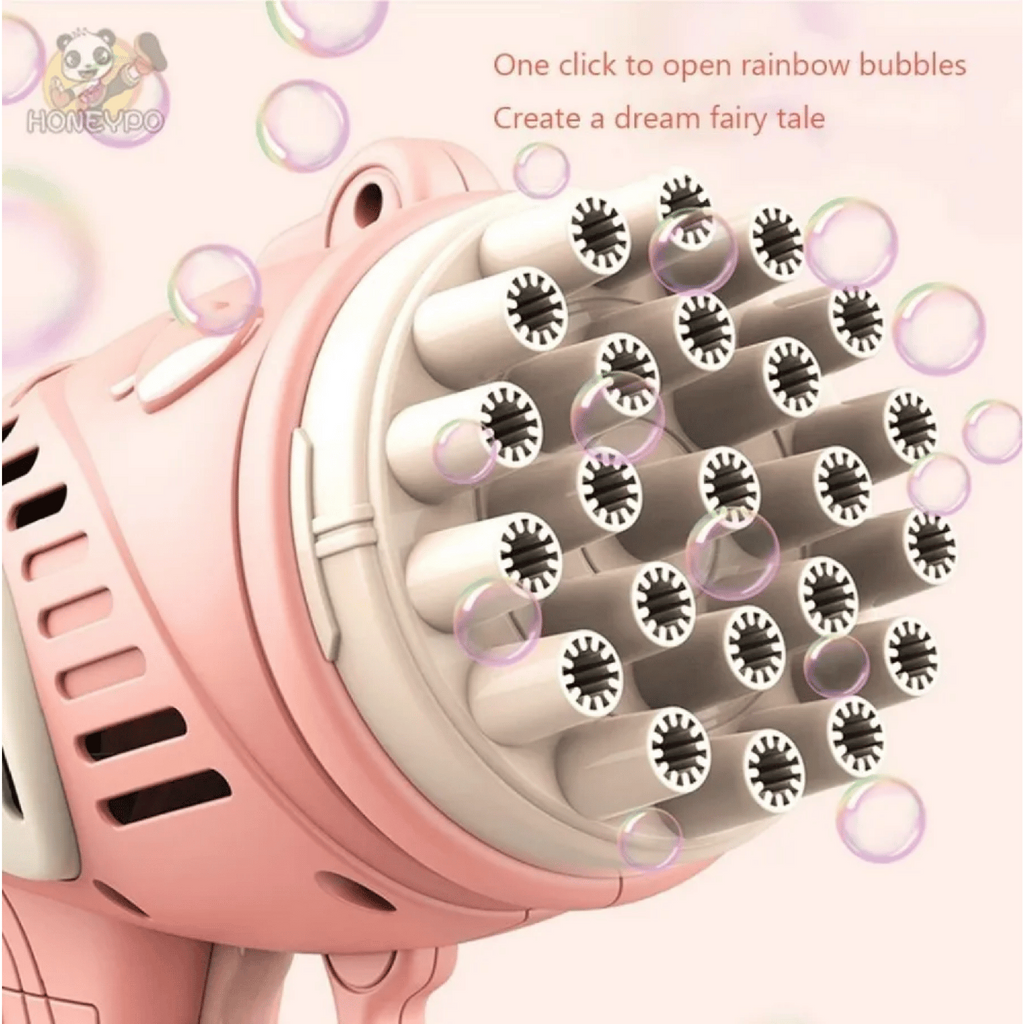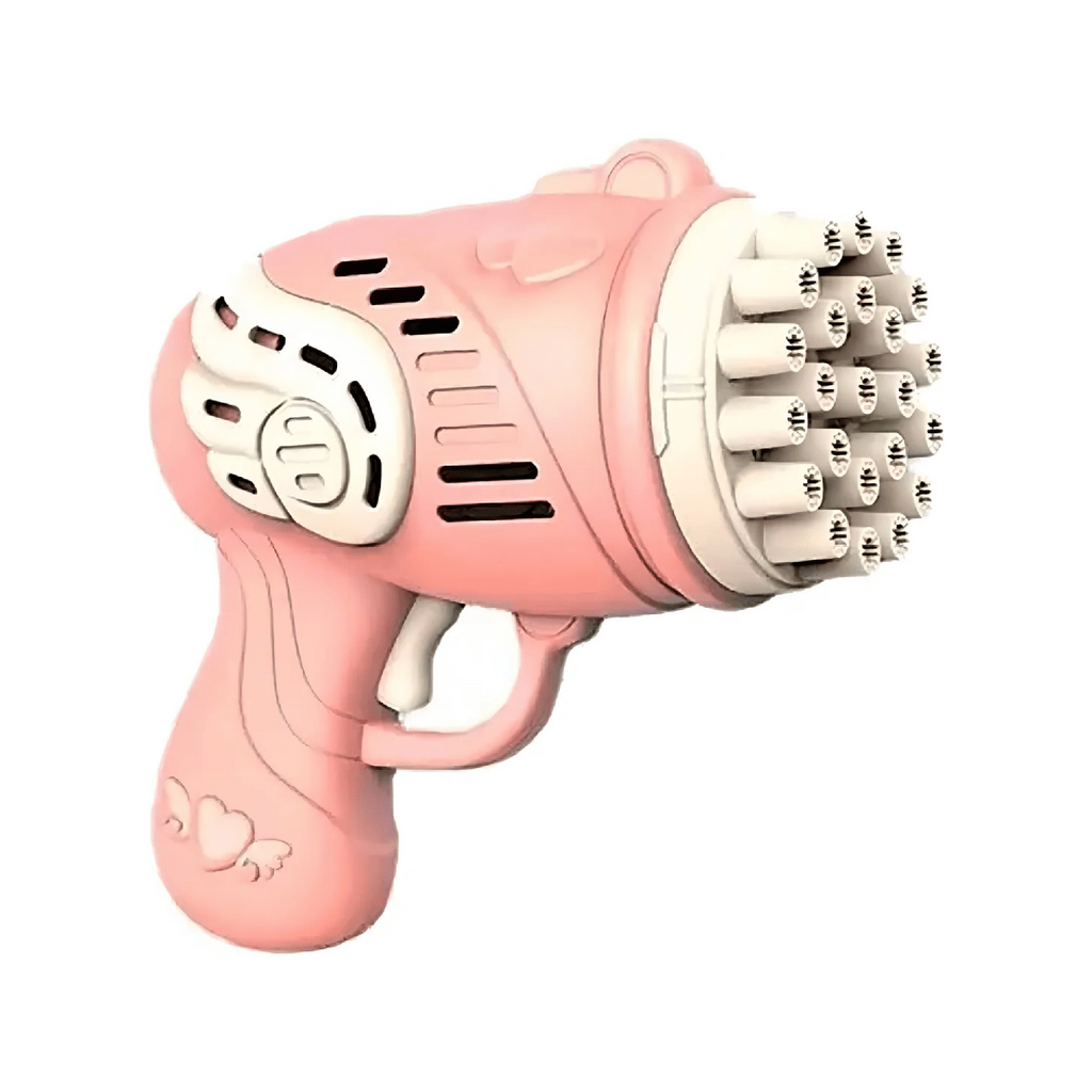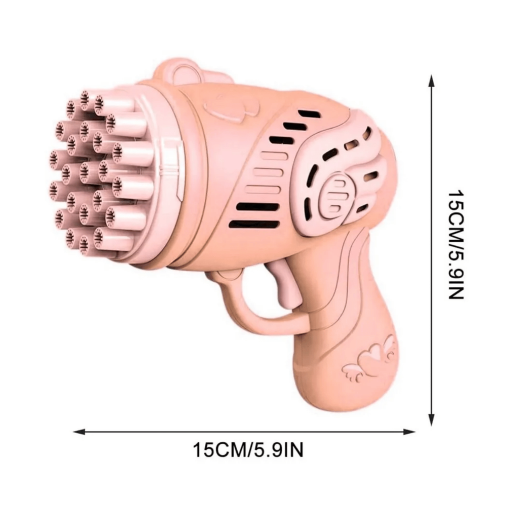 ¡Haz que cada juego sea mágico! Esta pistola lanza burbujas cuenta con un diseño innovador de 23 orificios que generan miles de burbujas por minuto, convirtiendo cualquier momento en una experiencia divertida y visualmente espectacular. Fabricada en material ABS seguro, es ideal para niños mayores de 3 años. Además, su modo de ventilador integrado brinda una función refrescante para los días calurosos. Funciona con pilas AA, lo que la hace práctica y fácil de llevar a todas partes.