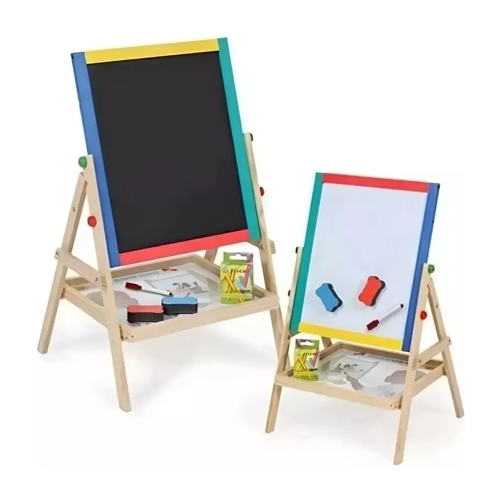 Incluye todos los accesorios necesarios para comenzar a usarla de inmediato: tizas, plumón y borrador. Su tamaño compacto y estructura estable la hacen fácil de colocar en cualquier espacio de estudio o juego.