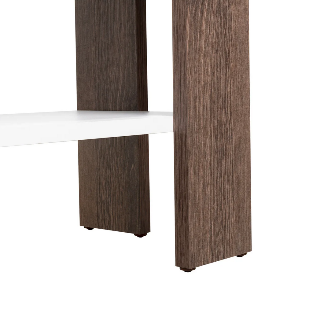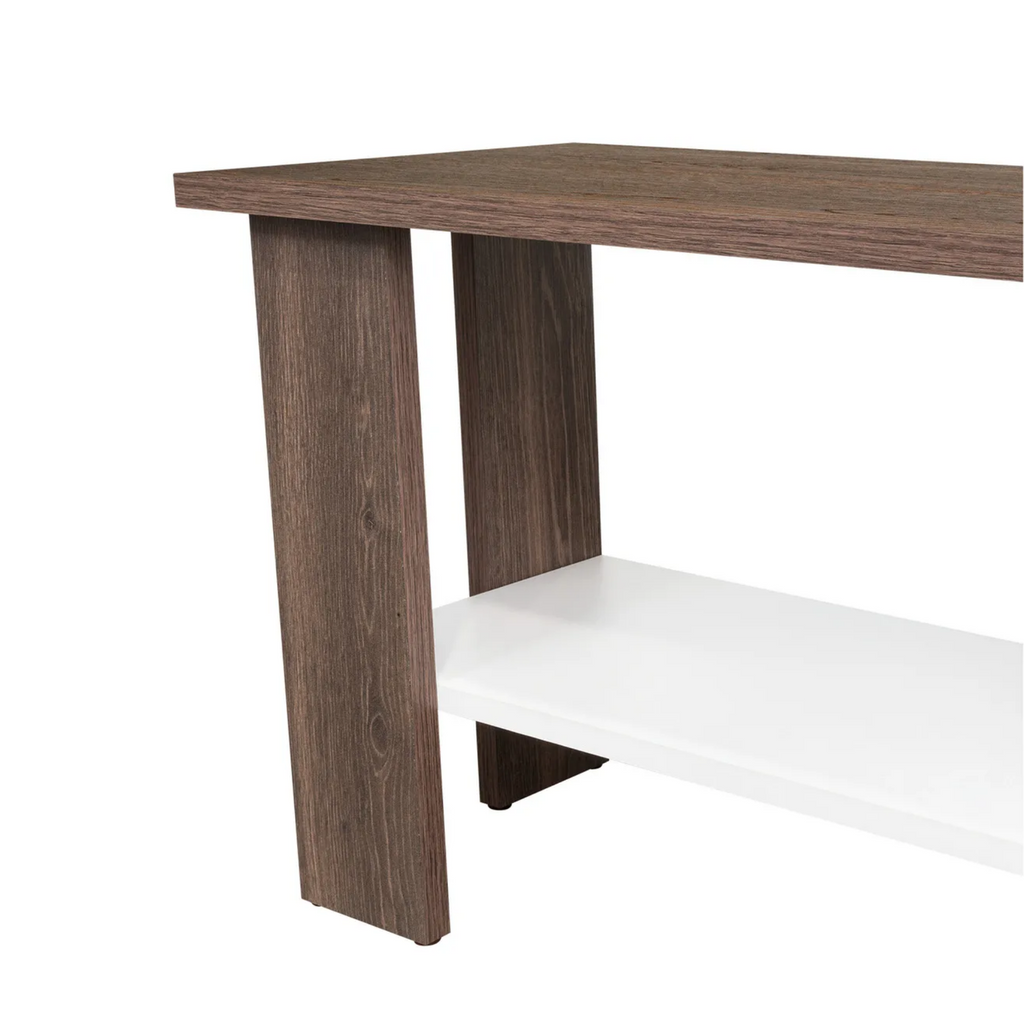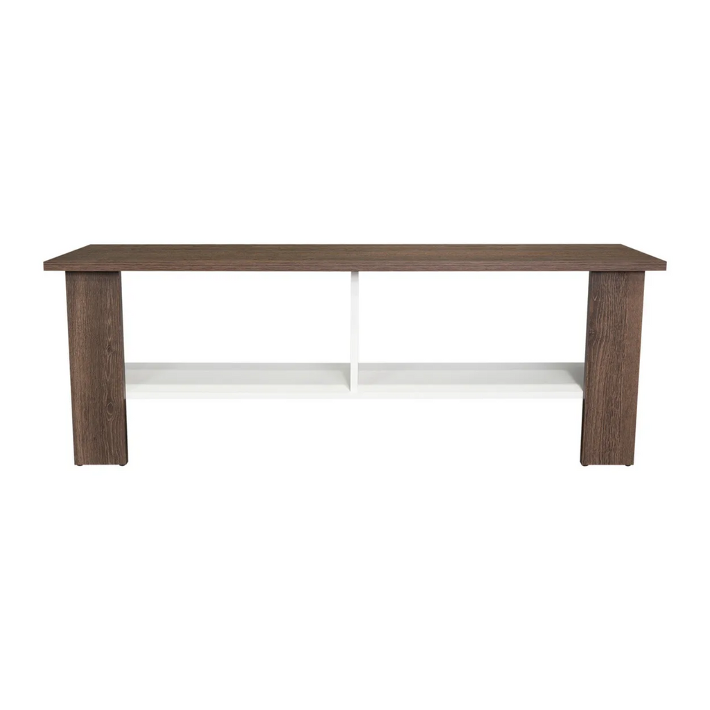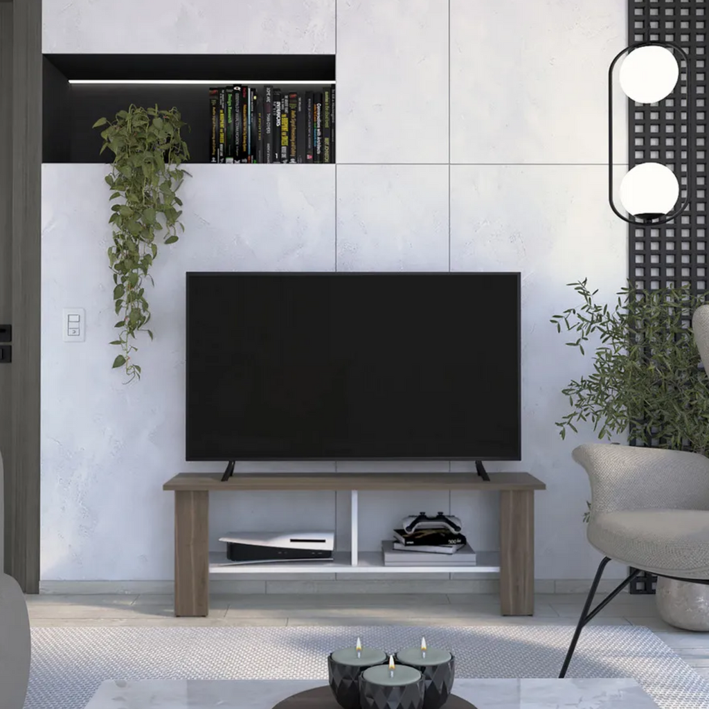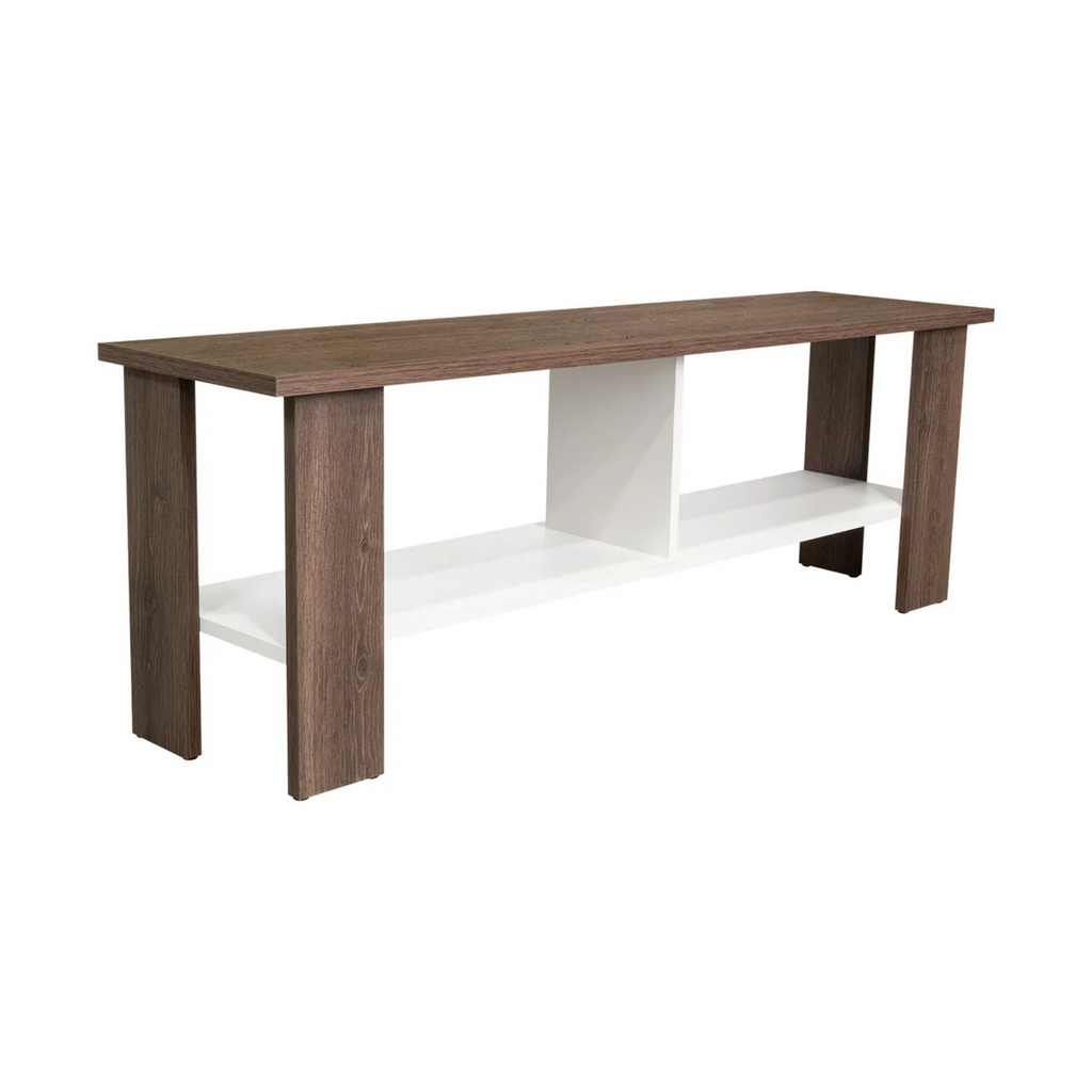Optimiza tu sala con el moderno Rack para TV de hasta 50", ideal para espacios compactos sin perder estilo ni funcionalidad. Su diseño en tonos café oscuro y blanco combina perfectamente con ambientes contemporáneos, brindando un toque elegante y minimalista. Cuenta con 2 repisas abiertas para ubicar consolas, parlantes o decoraciones, mientras que su estructura baja ofrece una estética sobria y funcional.