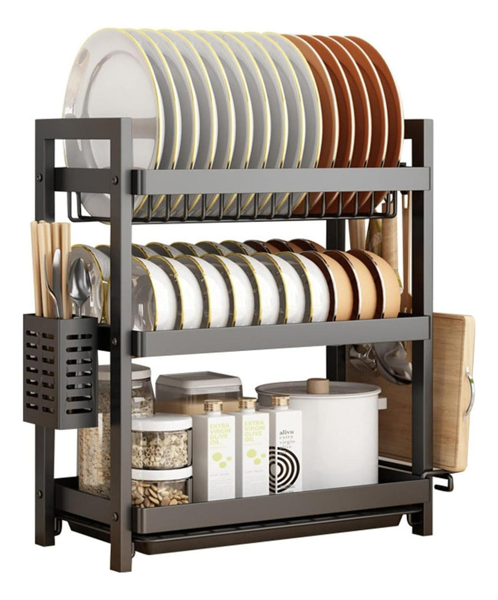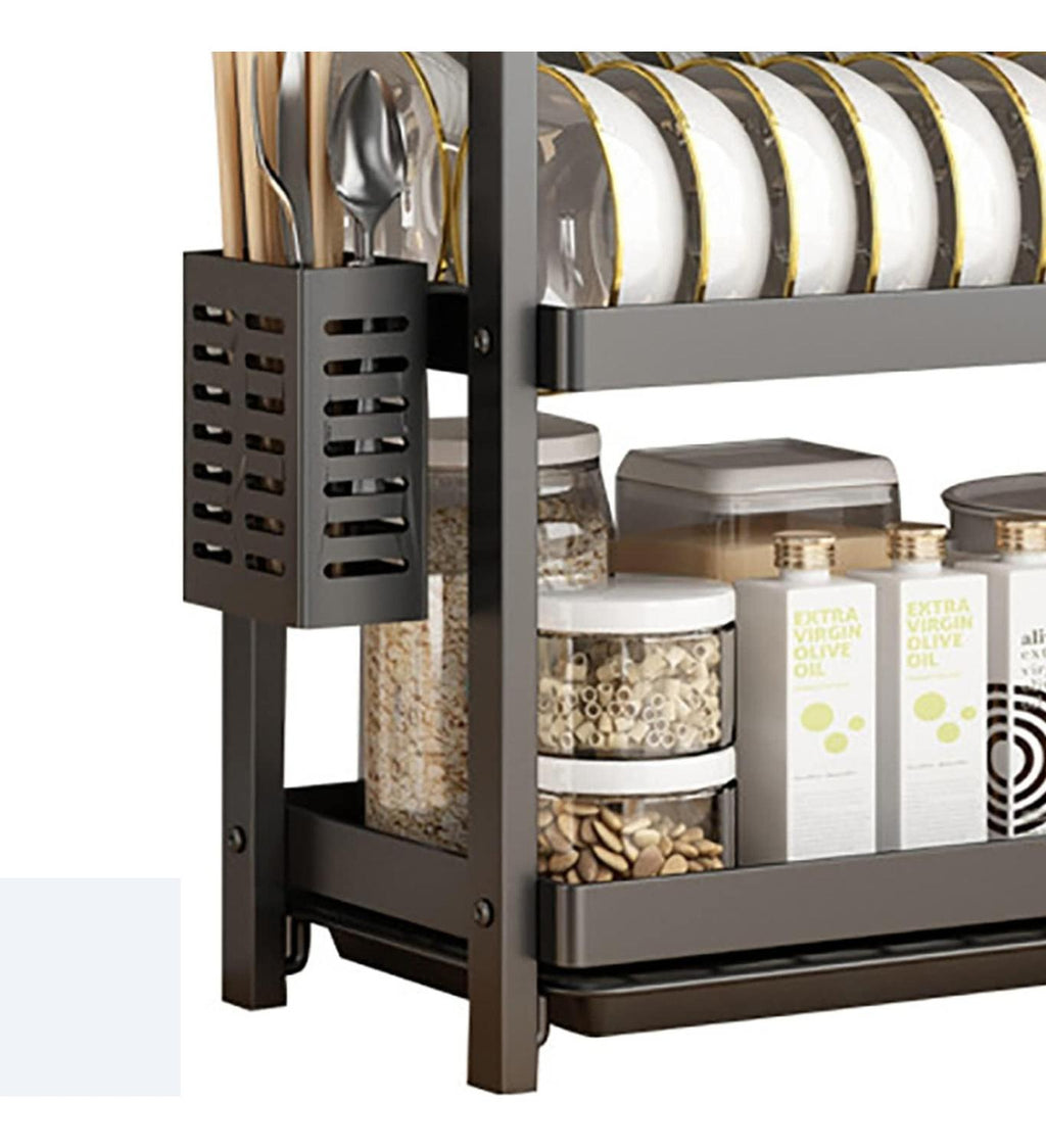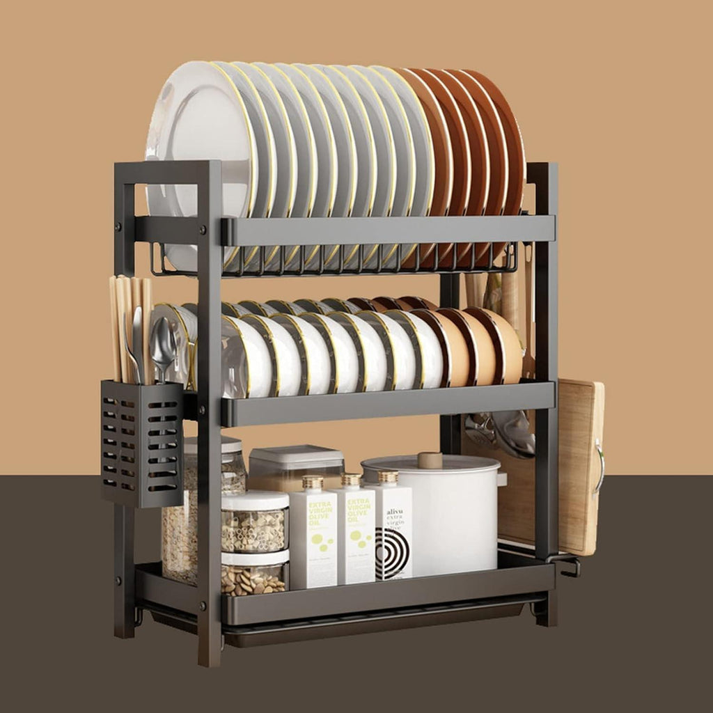 Este escurridor de platos negro de primera calidad con bandeja de goteo está hecho de acero al carbono calificado, que es resistente a la oxidación, perfecto para escurridor de cocina. Bandeja de drenaje extraíble: el escurridor de platos permite eliminar fácilmente el exceso de agua, de manera fácil y rápida. limpiar. En el tercer nivel, puede colocar unos 15 platos, y los otros dos niveles para coloque tazones, tazas, sartenes, ollas, botellas, etc. El estante para cubiertos lateral puede contener varios utensilios y el otro lado puede almacenar tablas de cortar. Mantiene su cocina limpia y organizada. Este estante para platos de 3 niveles presenta una construcción robusta y un diseño que ahorra espacio, un marco de aleación cromado con bandeja extraíble fácil de limpiar y soporte para cubiertos. Puede usar el nivel inferior para platillos, tazas, tazones, etc., la rejilla lateral para la tabla de cortar y el soporte para palillos. Mantén tu cocina limpia y ordenada. Cada nivel tiene su propia bandeja de plástico debajo que se desliza fácilmente hacia adentro y hacia afuera para una limpieza rápida. No te preocupes por volver a mojar otros platos secos ni por pasar mucho tiempo limpiando la encimera. El escurreplatos mantiene la encimera de la cocina ordenada y seca. Material: Metal. Medidas:Ancho : 44 x 20 x50CM Color: Negro. Peso: 1.8 kg. Medidas empaque: 10x30x44 cm. Producto 100% recomendado. Garantía Legal de 6 meses.