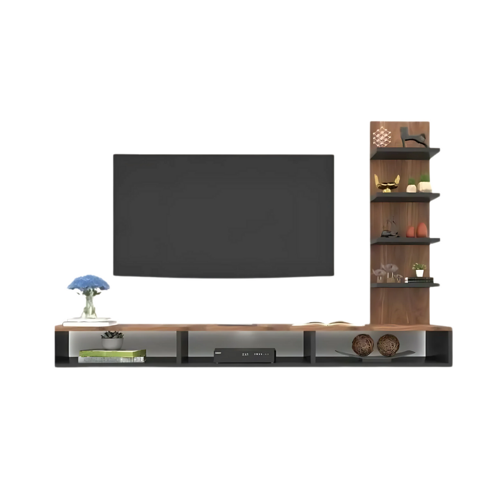 Gracias a su formato flotante, no ocupa espacio en el suelo y aporta una sensación de amplitud en cualquier ambiente. Además, cuenta con compartimento para parlantes y es compatible con televisores de hasta 55 pulgadas.