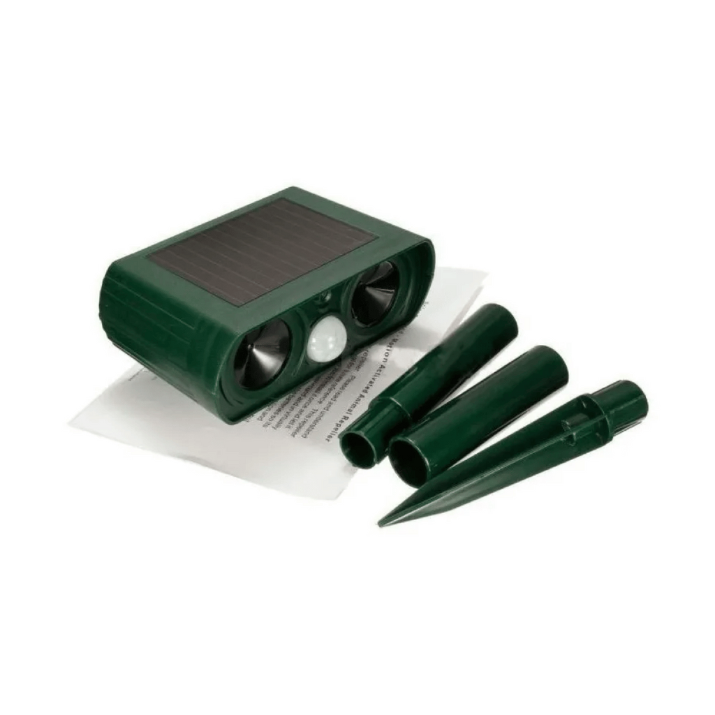 Mantén tu jardín libre de gatos, perros y plagas con este repelente ultrasónico solar, fácil de instalar y diseñado para funcionar todo el año bajo casi cualquier condición climática. Solo inserta la estaca en la tierra y deja que la energía solar recargue sus baterías para un funcionamiento continuo y ecológico.