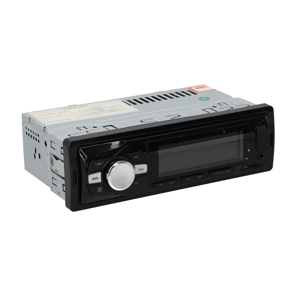 Radio de coche con radio Bluetooth cdx-6819-car de tamaño 1 din, equipada con entradas USB, aux, Bluetooth y microSD de hasta 16 GB de memoria, el modelo de radio de coche está equipado con receptor de radio FM con búsqueda automática de radio. Esta radio de coche se distingue por la presencia de Bluetooth, puede conectar un teléfono inteligente o tableta, escuchar música y hacer o recibir llamadas telefónicas. Reproduce radio FM, música de unidades flash USB, tarjetas de memoria SDHC y desde tu smartphone o tablet usando un cable a través de entrada auxiliar. La radio del coche tiene un panel de control clásico no extraíble, en el que se encuentra: pantalla LCD, control de volumen, conector USB, ranura para tarjeta de memoria SD, entrada auxiliar y botones de conmutación entre pistas y estaciones de radio. Hay un sintonizador FM integrado con un rango de frecuencia estándar europeo de 87,50 a 108 MHz. Hay un control remoto en el kit, que te permitirá controlar la radio desde el asiento trasero. La sintonización e instalación de la radio es fácil y no requiere habilidades especiales. 1 tamaño din, tamaño estándar para todas las marcas de automóviles (eje de montaje incluido). Material: Plástico. Dimensiones: 20x11x8 cm. Color: Negro. Producto 100% recomendado. Garantía Legal de 6 meses.