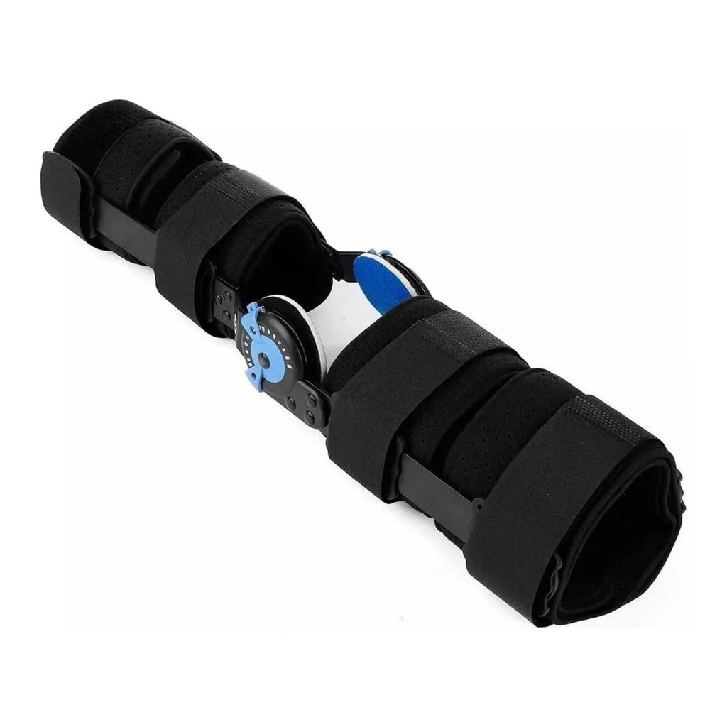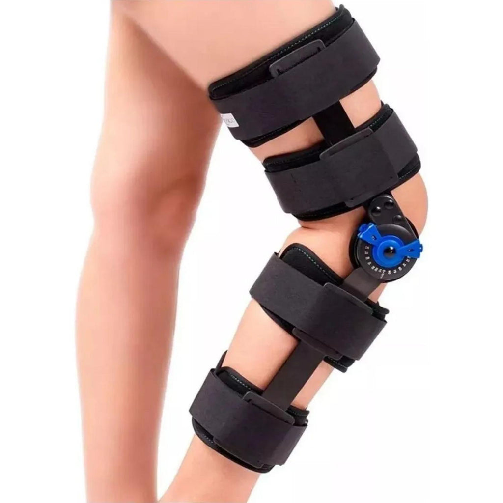 Esta rodillera ortopédica permite limitar y controlar los ángulos de flexión y extensión de la rodilla mediante bisagras ajustables, brindando inmovilización o movimiento restringido según la indicación del profesional médico. Su diseño universal es adecuado para adultos y facilita la rehabilitación tras cirugías, fracturas o traumas.
