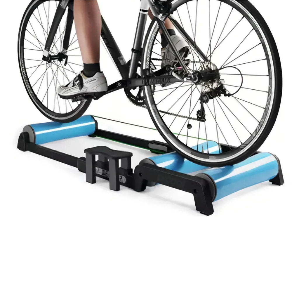 Rodillo de equilibrio ideal para mantener la rutina de ciclismo en casa cuando las condiciones climáticas o situaciones como la pandemia impiden salir a la calle. Permite fijar la bicicleta y pedalear sin moverse del lugar, mejorando la coordinación, resistencia y fuerza muscular. Su diseño telescópico silencioso y soporte de rueda delantera ajustable se adapta a múltiples modelos de bicicletas, ofreciendo una experiencia de conducción más real y cómoda.