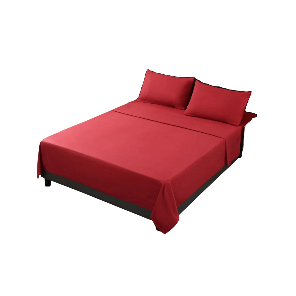 Características principales: • Medidas: Sábana encimera 210 x 235 cm / Sábana ajustable 150 x 200 + 27.5 cm / Fundas 50 x 70 cm • Material: 50% algodón, 50% poliéster • Color: Burdeo • Medidas del empaque: 35 cm x 30 cm x 6 cm • Producto 100% recomendado • Garantía: Legal de 6 meses