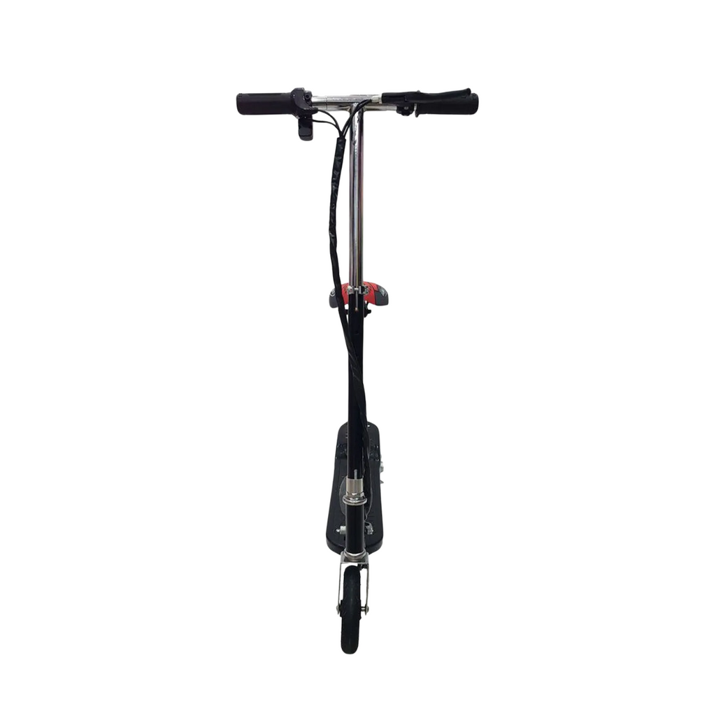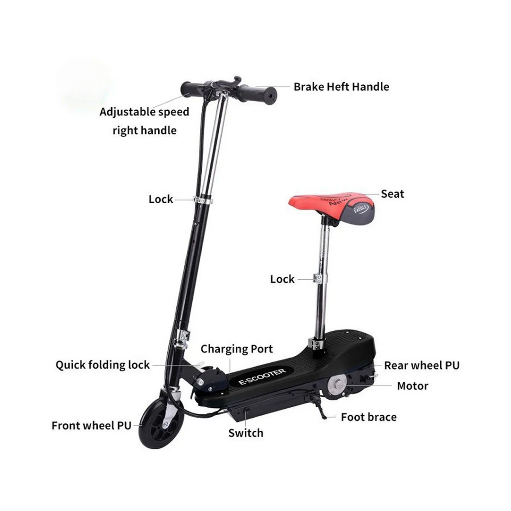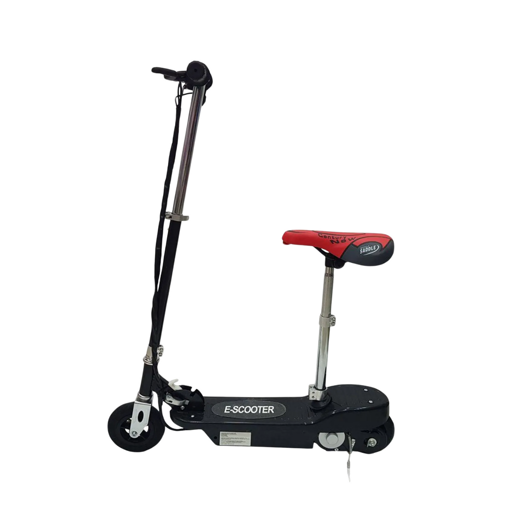 Scooter eléctrico infantil plegable con asiento, diseñado para brindar diversión y comodidad a niños que pesan entre 8 y 60 kg. Su estructura de acero asegura resistencia y durabilidad, mientras que su motor de alto torque permite alcanzar velocidades de hasta 12 km/h. Cuenta con un control de acelerador con empuñadura giratoria para un manejo fácil y un freno delantero para mayor seguridad. Sus neumáticos de caucho macizo y soporte de pie retráctil complementan un diseño pensado para el confort y la estabilidad. Además, incluye un sistema de batería recargable de plomo-ácido sellada de 24 V con dos baterías de 12 V y 4,5 Ah para un uso continuo de hasta tres horas y media.